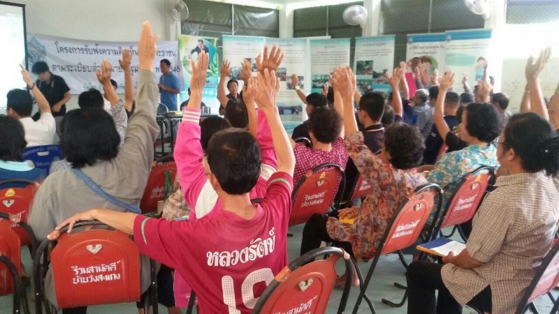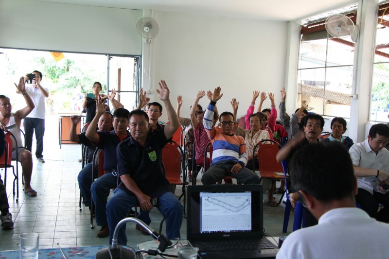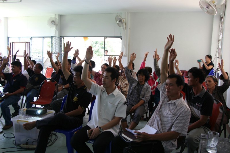 โดยผู้เข้าร่วมประชุมประกอบด้วย ประชาชนในพื้นที่ ผู้นำท้องถิ่น กำนัน ผู้ใหญ่บ้าน ซึ่งที่ประชุมมีมติดังนี้