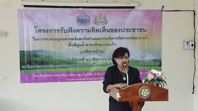 วันอังคารที่ 20 มิถุนายน 2560 เวลา 08.30 - 16.00 น. นายเอนก ชมพานิชย์ ผู้อำนวยการสำนักงานทรัพยากรน้ำภาค 2 มอบหมายให้นางจารุทรรศน์ สื่อประเสริฐสุข ผู้อำนวยการส่วนประสานและบริหารจัดการลุ่มน้ำป่าสัก พร้อมด้วยเจ้าหน้าที่ ดำเนินโครงการรับฟังความคิดเห็นของประชาชนเพื่อทบทวนยุทธศาสตร์และจัดทำแผนการบริหารจัดการทรัพยากรน้ำ ในพื้นที่ลุ่มน้ำสาขาห้วยเกาะแก้ว (เวทีชาวบ้าน) ณ ห้องประชุมองค์การบริหารส่วนตำบลบ้านใหม่สามัคคี อำเภอชัยบาดาล จังหวัดลพบุรี โดยมีนางสาวจรีรัตน์ วงษ์ศรีไทย นายกองค์การบริหารส่วนตำบลบ้านใหม่สามัคคี กล่าวเปิดโครงการ มีผู้เข้าร่วมโครงการ จำนวน 89 คน