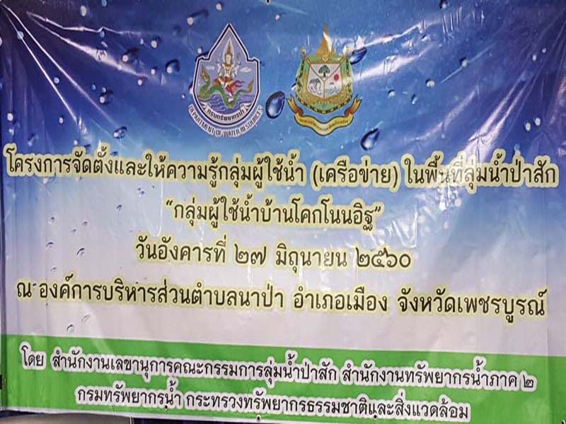 วัตถุประสงค์ เพื่อจัดตั้งกลุ่มผู้ใช้น้ำ/เครือข่าย การบริหารจัดการทรัพยากรน้ำในพื้นที่ลุ่มน้ำป่าสัก ให้เป็นผู้นำแนวทางในการบริหารจัดการทรัพยากรน้ำ การอนุรักษ์ ฟื้นฟู การดูแลรักษาทรัพยากรน้ำและทรัพยากรอื่นๆที่เกี่ยวข้องไปสู่การปฏิบัติในพื้นที่ให้เกิดผลเป็นรูปธรรม เพื่อเสริมสร้างความรู้ความเข้าใจให้กลุ่มผู้ใช้น้ำ/เครือข่ายในด้านการดูแล อนุรักษ์ฟื้นฟู และการบำรุงรักษาแหล่งน้ำ ให้อยู่ในสภาพใช้ประโยชน์ได้อย่างมีประสิทธิภาพ และเพื่อส่งเสริมให้กลุ่มผู้ใช้น้ำ/เครือข่าย มีความเข้มแข็ง สามารถดำเนินงานบริหารจัดการทรัพยากรน้ำในพื้นที่ได้อย่างมีประสิทธิภาพ โดยมีผู้เข้าร่วมโครงการประกอบด้วย ประชาชนผู้มีส่วนได้เสียในพื้นที่ลุ่มน้ำป่าสัก นายกองค์การบริหารส่วนตำบลนาป่า ปลัดองค์การบริหารส่วนตำบลนาป่า กำนันตำบลนาป่า ผู้ใหญ่บ้านหมู่ที่ 1 - 16 จำนวนทั้งสิ้น 90 คน