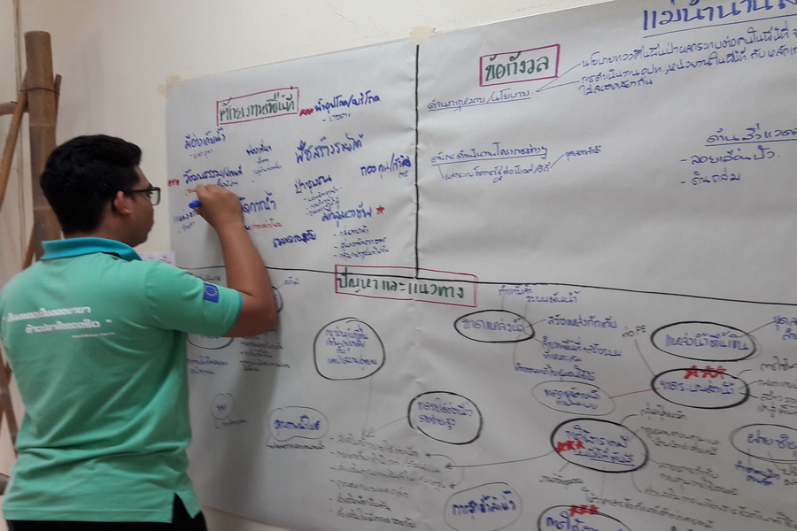 ในช่วงที่ 2เป็นการแบ่งกลุ่มระดมความคิดเห็นเกี่ยวกับสถานการณ์ประเด็นปัญหา ความต้องการ แนวทางการแก้ไข และพัฒนาทรัพยากรน้ำในลุ่มน้ำสาขาแม่น้ำน่านส่วนที่ 2พร้อมจัดทำ Mind map เชื่อมโยงข้อมูลที่เกี่ยวข้องเพื่อนำไปสู่การกำหนดแนวทางบริหารจัดการทรัพยากรน้ำในพื้นที่ต้นน้ำ กลางน้ำ และปลายน้ำ โดยทีมวิทยากรมูลนิธิฮักเมืองน่านและเจ้าหน้าที่ส่วนประสานและบริหารจัดการลุ่มน้ำน่าน