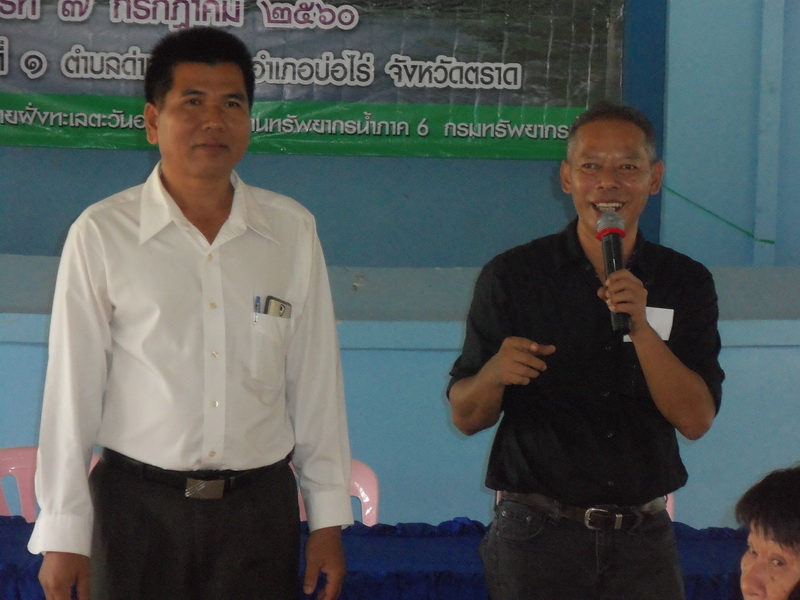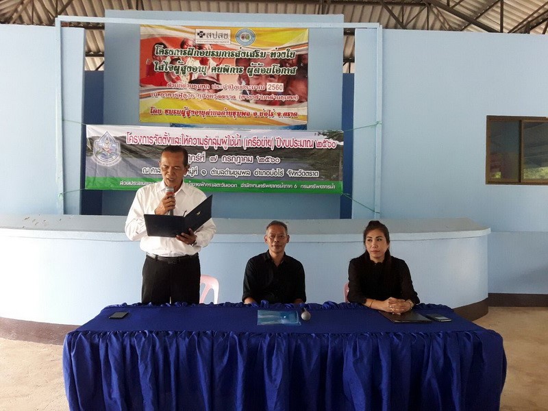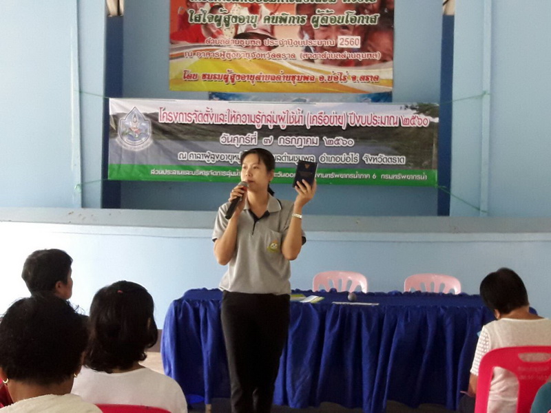 เมื่อวันที่ ๗ กรกฎาคม ๒๕๖๐ สำนักงานทรัพยากรน้ำภาค ๖ โดยส่วนประสานและบริหารจัดการลุ่มน้ำชายฝั่งทะเลตะวันออก ได้ดำเนินการจัดโครงการจัดตั้งและให้ความรู้กลุ่มผู้ใช้น้ำ (เครือข่าย) ปีงบประมาณ ๒๕๖๐ ในพื้นที่โครงการอนุรักษ์และฟื้นฟูแหล่งน้ำเขาไม้ซี้ ณ ศาลาผู้สูงอายุหมู่ที่ ๑ ตำบลด่านชุมพล อำเภอบ่อไร่ จังหวัดตราด เพื่อจัดตั้งกลุ่มเครือข่ายการบริหารจัดการทรัพยากรน้ำในพื้นที่ลุ่มน้ำสาขา ให้เป็นผู้นำแนวทางในการบริหารจัดการทรัพยากรน้ำ การอนุรักษ์ ฟื้นฟู การดูแลรักษาทรัพยากรน้ำและอื่นๆ ที่เกี่ยวข้องไปสู่การปฏิบัติให้เกิดผลเป็นรูปธรรม มีการแลกเปลี่ยนเรียนรู้ ประสบการณ์ และถ่ายทอดเจตนารมณ์ของการบริหารจัดการทรัพยากรน้ำแก่สมาชิกของเครือข่าย ส่งเสริมการมีส่วนร่วมในการบริหารจัดการทรัพยากรน้ำในพื้นที่ลุ่มน้ำอย่างจริงจัง พร้อมทั้งให้ความรู้และให้เห็นคุณค่าของการเป็นอาสาสมัครพิทักษ์ทรัพยากรธรรมชาติและสิ่งแวดล้อมหมู่บ้าน (ทสม.) ผู้เข้าร่วมประชุมประกอบด้วย องค์กรปกครองส่วนท้องถิ่น ผู้นำชุมชน ผู้ใหญ่บ้าน ผู้มีส่วนได้ ส่วนเสียในพื้นที่ เจ้าหน้าที่ที่เกี่ยวข้อง จำนวน ๑๒๓ คน