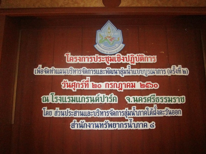 นายไกรสร เพ็งสกุล ผู้อำนวยการสำนักงานทรัพยากรน้ำภาค 8 มอบหมายเจ้าหน้าที่สำนักงานเลขานุการคณะกรรมการลุ่มน้ำภาคใต้ฝั่งตะวันออก (นครศรีธรรมราช) สำนักงานทรัพยากรน้ำภาค 8 ดำเนินการจัดประชุมเชิงปฏิบัติการเพื่อจัดทำแผนบริหารจัดการและพัฒนาลุ่มน้ำแบบบูรณาการ (ครั้งที่ 2) ณ ห้องประชุมชบา โรงแรมแกรนด์ ปาร์ค อำเภอเมือง จังหวัดนครศรีธรรมราช เมื่อวันที่ 21 กรกฎาคม 2560 มีวัตถุประสงค์เพื่อให้องค์กรลุ่มน้ำ หน่วยงาน อปท.และผู้มีส่วนได้ส่วนเสียในพื้นที่ลุ่มน้ำได้มีส่วนร่วมในการจัดทำแผนบริหารจัดการและพัฒนาลุ่มน้ำแบบบูรณาการ อีกทั้งยังเป็นการจัดทำร่างแผนปฏิบัติการ ปี 2562 อีกด้วย ผู้เข้าร่วมประชุมประกอบด้วยคณะอนุกรรมการลุ่มน้ำ คณะทำงานลุ่มน้ำสาขา นายอำเภอ/ ปลัดอำเภอผู้รับผิดชอบงานด้านแผน ผู้แทนองค์กรปกครองส่วนท้องถิ่น ส่วนราชการที่เกี่ยวข้อง ที่มาจากพื้นที่ลุ่มน้ำสาขาภาคใต้ฝั่งตะวันออก ส่วนที่ 3 ลุ่มน้ำสาขาคลองกลาย ลุ่มน้ำสาขาภาคใต้ฝั่งตะวันออก ส่วนที่ 4 และเจ้าหน้าที่กรมทรัพยากรน้ำ รวมจำนวน 58 คน