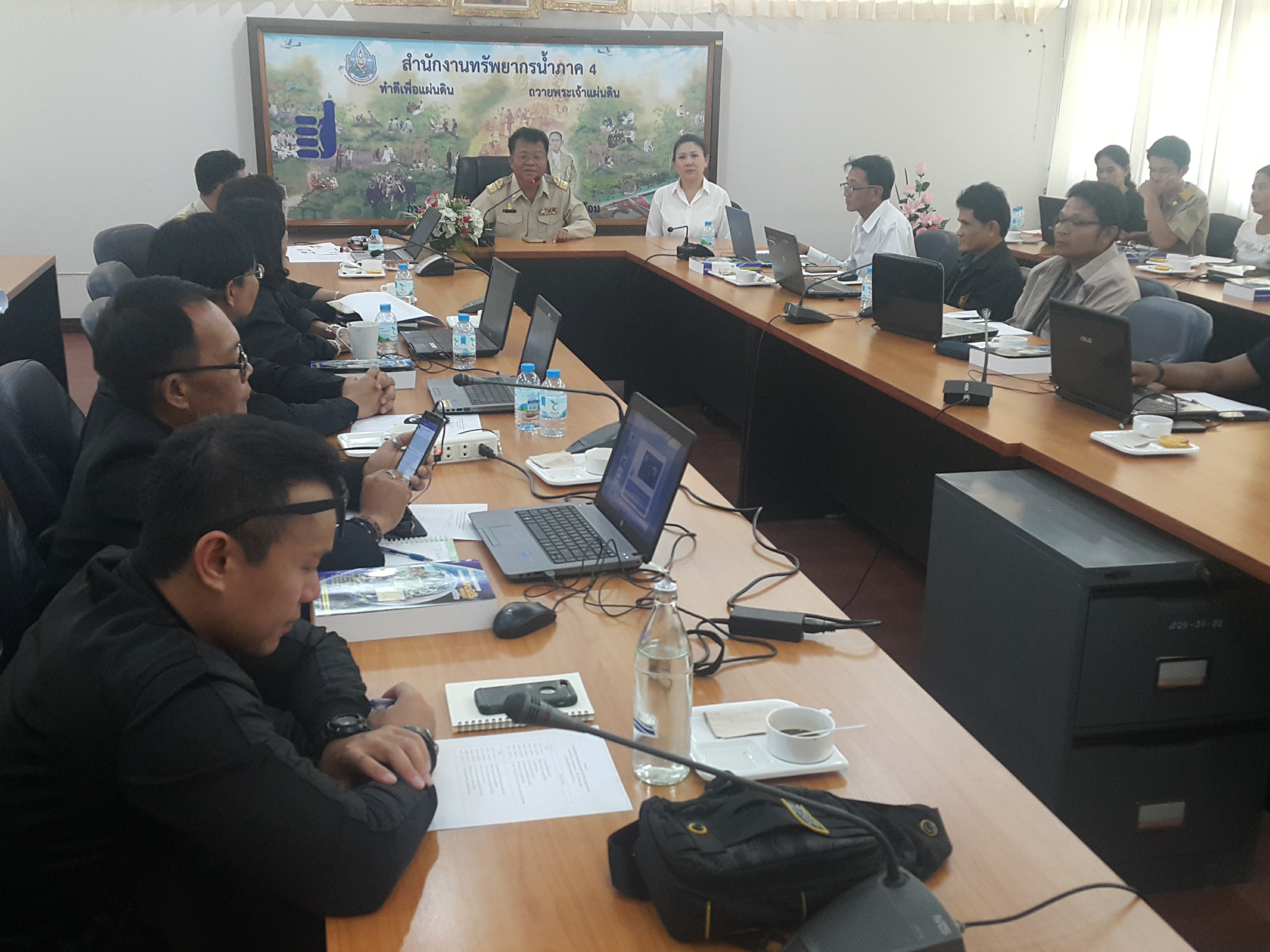ผู้เข้าร่วมประชุมเป็นเจ้าหน้าที่ของสำนักงานทรัพยากรน้ำภาค 4 จำนวน 40 คน โดยผู้อำนวยการศูนย์สารสนเทศทรัพยากรน้ำและเจ้าหน้าที่ศูนย์เทคโนโลยีสารสนเทศทรัพยากรน้ำเข้าร่วมประชุม และให้ข้อเสนอแนะในการจัดทำฐานข้อมูล วัตถุประสงค์ของการประชุม เพื่อให้เจ้าหน้าที่ของสำนักงานทรัพยากรน้ำภาค 4 สามารถ สร้างและแก้ไขข้อมูลการสร้างแผนที่เฉพาะเรื่อง และการนำเสนอข้อมูลในการวางแผนบริหารทรัพยากรน้ำ ประยุกต์ใช้งานระบบภูมิสารสนเทศได้จริง