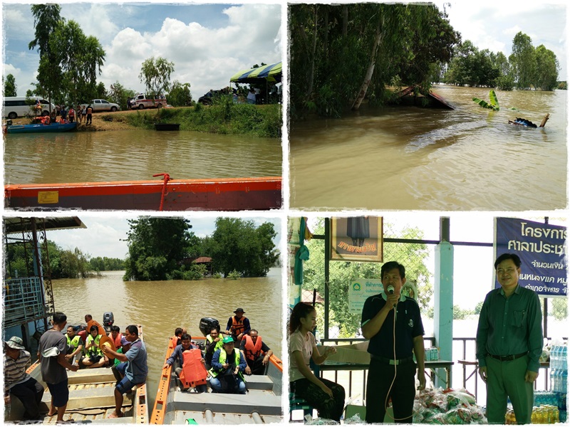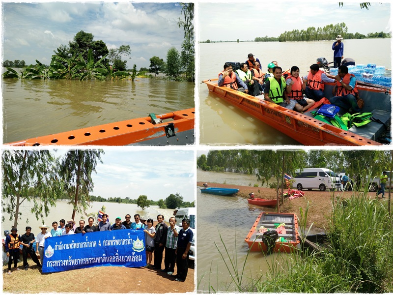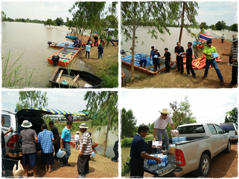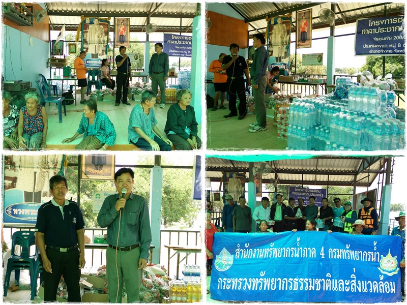 วันนี้ 8 สิงหาคม 2560 นายธีระพร วีนะสนธิ ผู้อำนวยการสำนักงานทรัพยากรน้ำภาค 4 มอบให้นายบัญชา สายรอด ผู้อำนวยการส่วนประสานและบริหารจัดการลุ่มน้ำชีตอนล่าง พร้อมเจ้าหน้าที่ เป็นตัวแทน สทภ.4 และร่วมกับคณะกรรมการลุ่มน้ำชีจังหวัดร้อยเอ็ด นำสิ่งของช่วยเหลือผู้ประสบอุทกภัย ได้แก่ น้ำดื่ม น้ำมันพืช บะหมีกึ่งสำเร็จรูป อาหารกระป๋อง โดยมอบที่หมู่บ้านหนองแค ตำบลม่วงลาด อำเภอจังหาร จังหวัดร้อยเอ็ด ซึ่งเป็นหมู่บ้านริมแม่น้ำชี ถูกน้ำท่วมโดยล้อมรอบหมู่บ้าน ไม่สามารถเดินทางเข้าออกหมู่บ้านโดยรถยนต์ ได้ มีครอบครัวประมาณ 30 ครัวเรือน โดยน้ำดื่มส่วนหนึ่งได้รับความอนุเคราะห์จากสำนักงานทรัพยากรน้ำภาค 3 ร่วมกับ วิทยาลัยป้องกันและบรรเทาสาธารณภัย ขอนแก่น, อบต.ม่วงลาด โดยขนส่งสิ่งของทางเรือไปสู่ผู้ประสบภัยในหมู่บ้าน ซึ่งชาวบ้านมีความปลาบปลื้มดีใจและให้การต้อนรับคณะเป็นอย่างดี