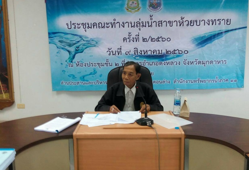 เมื่อวันที่ 9 สิงหาคม 2560 ส่วนประสานและบริหารจัดการลุ่มน้ำโขง ชี มูลตอนล่าง สำนักงานทรัพยากรน้ำภาค 11 จัดประชุมคณะทำงานลุ่มน้ำสาขาห้วยบางทราย ครั้งที่ 2/2560โดยมีนายสวรรค์ โฉมเฉลา เป็นประธาน ณ ห้องประชุมชั้น 2ที่ว่าการอำเภอดงหลวง จังหวัดมุกดาหาร ทั้งนี้มีวัตถุประสงค์เพื่อสรุปข้อมูลสถานการณ์น้ำ ในภาพรวมของลุ่มน้ำสาขา น้ำต้นทุนในอ่างเก็บน้ำ ในภาพรวมของลุ่มน้ำสาขา รายงานคุณภาพน้ำ แผนงานโครงการที่ได้รับจัดสรรงบประมาณในปี 2560 จากหน่วยงานที่เกี่ยวข้องด้านทรัพยากรน้ำ และสรุปกรอบยุทธศาสตร์การบริหารจัดการน้ำของลุ่มน้ำสาขา และขั้นตอนการจัดทำแผนปี 2562 ให้สอดคล้องกับยุทธศาสตร์การบริหารจัดการทรัพยากรน้ำของประเทศต่อไป