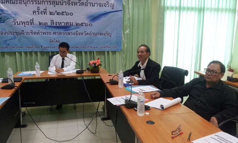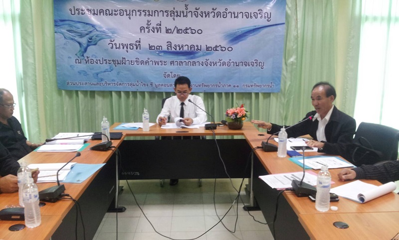 เมื่อวันที่ 23 สิงหาคม 2560 ส่วนประสานและบริหารจัดการลุ่มน้ำโขง ชี มูลตอนล่าง สำนักงานทรัพยากรน้ำภาค 11 จัดประชุมคณะอนุกรรมการลุ่มน้ำจังหวัดอำนาจเจริญ ครั้งที่ 2/2560 ได้รับเกียรติจาก นายจรูญรัตน์ หิรัญชุฬหะ ผู้อำนวยการสำนักงานทรัพยากรธรรมชาติและสิ่งแวดล้อมจังหวัดอำนาจเจริญ ให้เกียรติเป็นประธาน ณ ห้องประชุมฝ้ายขิดคำพระ ศาลากลางจังหวัดอำนาจเจริญ ทั้งนี้เพื่อรับทราบผลการดำเนินงานตามแผนบริหารจัดการทรัพยากรน้ำ ปีงบประมาณ 2560 ของหน่วยงานที่มีภารกิจด้านทรัพยากรน้ำและเพื่อรับทราบข้อมูลสถานการณ์น้ำในภาพรวมของลุ่มน้ำสาขาในพื้นที่จังหวัดอำนาจเจริญต่อไป