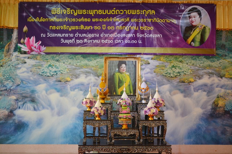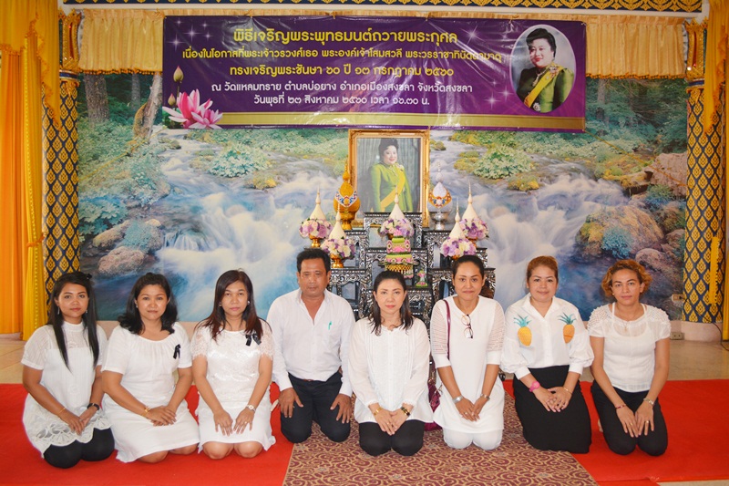 วันที่ 23 สิงหาคม 2560 เวลา 16.30 จังหวัดสงขลา จัดพิธีเจริญพระพุทธมนต์ถวายพระกุศล พระเจ้าวรวงศ์เธอ พระองค์เจ้าโสมสวลี พระวรราชาทินัดดามาตุ เนื่องในโอกาสทรงเจริญพระชันษา 60 ปี 13 กรกฎาคม 2560 ณ วัดแหลมทราย อำเภอเมือง จังหวัดสงขลา โดยนายทรงพล สวาสดิ์ธรรม ผู้ว่าราชการจังหวัดสงขลา เป็นประธานประกอบพิธีฯ ในการนี้นายไกรสร เพ็งสกุล ผู้อำนวยการสำนักงานทรัพยากรน้ำภาค 8 มอบหมายให้นางจันทิรา สุขศิวานันท์ ผู้อำนวยการส่วนอำนวยการ พร้อมเจ้าหน้าที่ เข้าร่วมพิธีเจริญพระพุทธมนต์ฯ เพื่อเป็นการแสดงออกถึงความจงรักภักดีและน้อมระลึกถึงพระกรุณาธิคุณอย่างหาที่สุดมิได้ ที่ทรงมีต่ออาณาประชาราษฎร์ ทรงปฏิบัติพระกรณียกิจต่างๆ ที่เป็นคุณูปการแก่ประเทศชาติและพระพุทธศาสนาอย่างอเนกอนันต์ ผู้เข้าร่วมพิธีในครั้งนี้ ประกอบด้วย หัวหน้าส่วนราชการ ข้าราชการ ทหาร ตำรวจและประชาชนทั่วไป