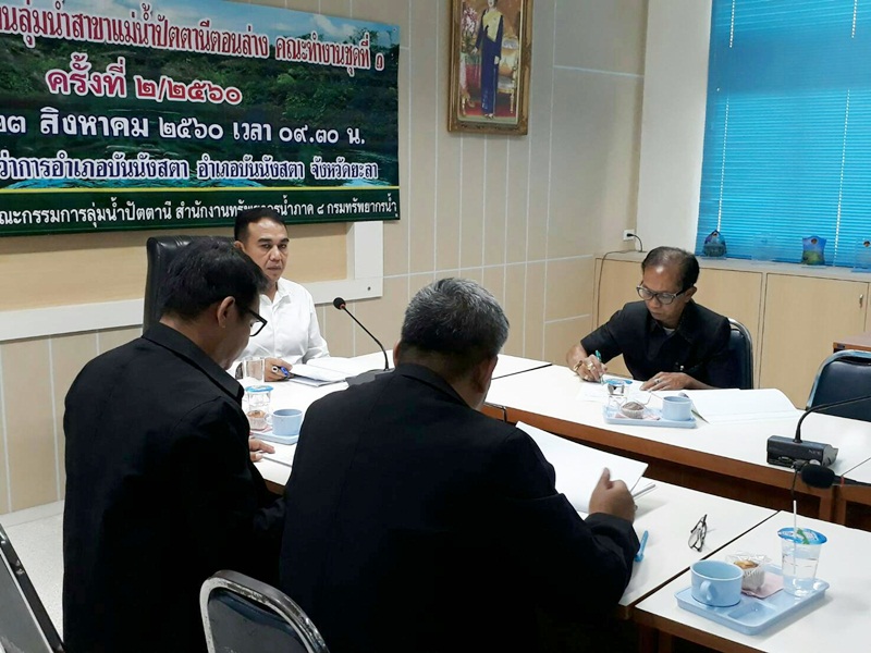 วันที่ 23 สิงหาคม 2560 ส่วนประสานและริหารจัดการลุ่มน้ำปัตตานี จัดประชุมคณะทำงานลุ่มน้ำสาขาแม่น้ำปัตตานีตอนล่าง คณะทำงานชุดที่ 1 พื้นที่ อำเภอบันนังสตา และอำเภอกรงปินัง โดยมีปลัดอำเภออาวุโสอำเภอบันนังสตาแทนนายอำเภอบันนังสตาเป็นประธาน เพื่อพิจารณากลั่นกรองแผนงานโครงการแบบบูรณาการจากหน่วยงานรับผิดชอบในพื้นที่เพื่อให้สอดคล้องกับเป้าหมายเชิงพื้นที่และเพื่อให้บรรลุผลตามเป้าหมายเชิงศักยภาพในแต่ละยุทศาสตร์