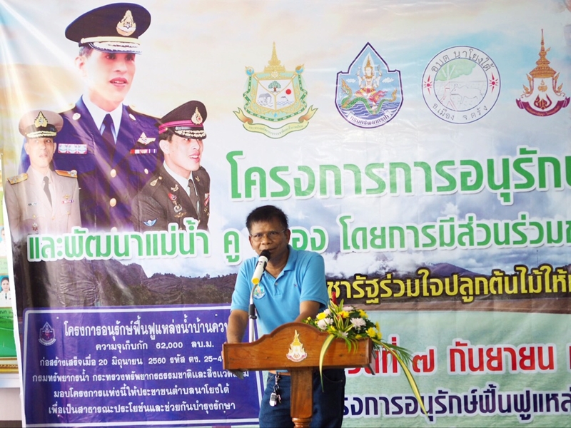 วันที่ 7 กันยายน 2560 นายไกรสร เพ็งสกุล ผู้อำนวยการสำนักงานทรัพยากรน้ำภาค 8 มอบหมายให้ นางขนิษฐา ภู่ทอง พร้อมเจ้าหน้าที่ ส่วนประสานและบริหารจัดการลุ่มน้ำภาคใต้ฝั่งตะวันตกส่วนที่ 2 จัดโครงการอนุรักษ์และพัฒนาแม่น้ำ คู คลองโดยการมีส่วนร่วมของประชาชน (ประชารัฐร่วมใจ ปลูกต้นไม้ให้แผ่นดิน) โดยนายนันธวัช เจริญวรรณ นายอำเภอเมืองตรัง เป็นประธานเปิดโครงการและเข้าร่วมกิจกรรม ณ โครงการอนุรักษ์ฟื้นฟูแหล่งน้ำบ้านควนตอ ตำบลนาโยงใต้ อำเภอเมือง จังหวัดตรัง ผู้เข้าร่วมโครงการประกอบด้วย ประชาชน เยาวชน นักเรียน ภาคราชการ ภาคเอกชน องค์กรปกครองส่วนท้องถิ่น จำนวน 120 คน โดยมีวัตถุประสงค์เพื่อรำลึกในพระมหากรุณาธิคุณของพระบาทสมเด็จพระปรมินทรมหาภูมิพลอดุลยเดช และสมเด็จพระนางเจ้าสิริกิติ์ พระบรมราชินีนาถ ในรัชกาลที่ 9 , เฉลิมพระเกียรติสมเด็จพระเจ้าอยู่หัว เนื่องในวโรกาสเฉลิมพระชนมพรรษา ครบรอบ 65 พรรษา วันที่ 28กรกฎาคม 2560 , ส่งเสริมความร่วมมือระหว่างภาคส่วนต่างๆในการฟื้นฟูและพัฒนาแม่น้ำ คูคลอง และตระหนักถึงคุณค่าของทรัพยากรธรรมชาติและสิ่งแวดล้อม โดยร่วมทำกิจกรรม รับฟังการบรรยาย ความเป็นมา ความสำคัญของวันอนุรักษ์และพัฒนาแม่น้ำ คู คลอง กิจกรรมประกวดวาดภาพ ในหัวข้อ “คู คลอง ของฉัน” กิจกรรมปลูกต้นไม้ และปล่อยปลา