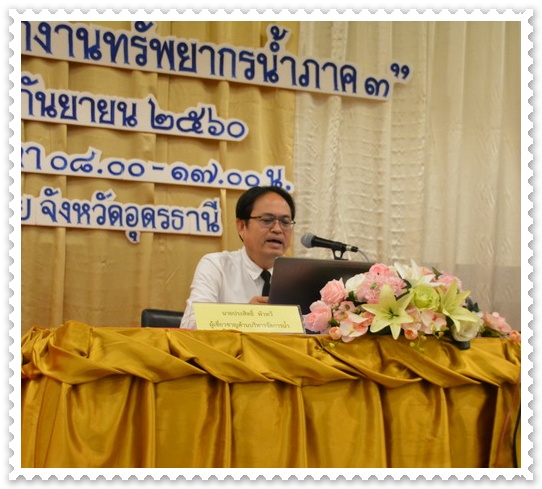 เมื่อวันอังคารที่ 12 กันยายน 2560 สำนักงานทรัพยากรน้ำภาค 3 โดยส่วนยุทธศาสตร์ได้จัดโครงการฝึกอบรม “พัฒนาศักยภาพบุคลากร สำนักงานทรัพยากรน้ำภาค 3” ณ โรงแรมนภาลัย อำเภอเมือง จังหวัดอุดรธานี โดยมีวัตถุประสงค์ให้ข้าราชการและเจ้าหน้าที่ของสำนักงานทรัพยากรน้ำภาค 3 มีความรู้ความเข้าใจแนวทางในการดำเนินงานของกรมทรัพยากรน้ำ ในปีงบประมาณ พ.ศ. 2561 และการพัฒนาตัวเองอย่างต่อเนื่องเพื่อให้การทำงานมีประสิทธิภาพ เหนือสิ่งอื่นใดทุกคนจะได้รับความรู้ในเรื่องศาสตร์พระราชา โครงการตามพระราชดำริ ที่มีองค์ความรู้อยู่ในปรัชญาเศรษฐกิจพอเพียงที่สามารถนำมาปรับใช้ในชีวิตครอบครัว และการทำงานได้อย่างมีความสุข เพื่อเสริมสร้างความสามัคคี ทำงานเป็นทีม ช่วยเหลือเกื้อกูลซึ่งกันและกัน ยอมรับฟังความคิดเห็นของผู้อื่น โดยคณะวิทยากรจากกรมทรัพยากรน้ำ คลังเขต 4 อุดรธานี และจากสำนักงานพัฒนาชุมชนจังหวัดอุดรธานี