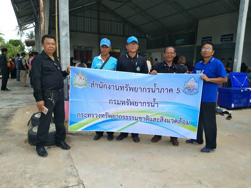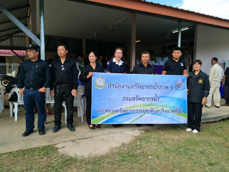 วันที่ 19 ตุลาคม 2560 สำนักงานทรัพยากรน้ำภาค 5 ได้ร่วมบริจาคสิ่งของและน้ำดื่มเพื่อช่วยเหลือผู้ประสบอุทกภัย ตามที่สำนักงานทรัพยากรธรรมชาติและสิ่งแวดล้อมจังหวัดนครราชสีมา ได้รับการประสานจากประธานเครือข่ายอาสาสมัครพิทักษ์ทรัพยากรธรรมชาติและสิ่งแวดล้อมหมู่บ้าน อำเภอพิมาย ขอความอนุเคราะห์สิ่งของและน้ำดื่มเพื่อช่วยเหลือผู้ประสบอุทกภัยบ้านไทยสามัคคี 100 หลังคาเรือน และบ้านจิก 20 ครัวเรือน