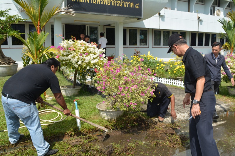 วันที่ 25 ตุลาคม 2560 เวลา 09.30 น. นายไกรสร เพ็งสกุล ผู้อำนวยการสำนักงานทรัพยากรน้ำภาค 8 พร้อมเจ้าหน้าที่ ร่วมกันจัดกิจกรรมในวันรักต้นไม้ประจำปีของชาติ พ.ศ.2560 ด้วยการปลูกต้นไม้และบำรุงรักษาต้นไม้ พรวนดิน ใส่ปุ๋ย แผ้วถางวัชพืช ตัดแต่งกิ่งไม้ และรดน้ำต้นไม้ในบริเวณหน่วยงาน เพื่อเป็นการสร้างและกระตุ้นจิตสำนึกของประชาชนให้เกิดความรักและหวงแหนทรัพยากรป่าไม้ของชาติ