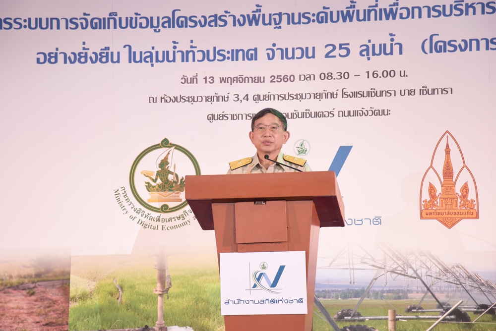 เมื่อวันที่ 13 พฤศจิกายน 2560 พล.อ.อ.ประจิน จั่นตอง รองนายกรัฐมนตรี เป็นประธานพิธีเปิดงานโครงการระบบจัดเก็บข้อมูลโครงสร้างพื้นฐานระดับพื้นที่การบริหารจัดการทรัพยากรน้ำอย่างยั่งยืน ในลุ่มน้ำทั่วประเทศ จำนวน25ลุ่มน้ำ (โครงการระยะยที่1) โดยมีนายภาดล ถาวรกฤชรัตน์ รองอธิบดีกรมทรัพยาการน้ำพร้อมด้วยนายสาธิต สื่อประเสริฐสุข ผู้อำนวยการศูนย์ป้องกันวิกฤติน้ำเข้าร่วมโครงการดังกล่าว โดยภายในงานมีนายภุชพงค์ โนดไธสง ผู้อำนวยการสำนักงานสถิติแห่งชาติ ร่วมด้วยรศ.ดร.วันเพ็ญ วิโรจนกูฏ มหาวิทยาลัยขอนแก่น ที่ปรึกษาโครงการ เป็นผู้ร่วมกล่าวรายงาน ซึ่งงานดังกล่าวมีผู้ร่วมงาน ประกอบด้วย หน่วยงานภาครัฐที่เป็นผู้จัดเก็บข้อมูล และผู้มีส่วนได้เสียในการบริหารจัดการน้ำของประเทศ ได้แก่กรมทรัพยากรน้ำ,กรมทรัพยากรน้ำบาดาล,สำนักงานสถิติแห่งชาติ,สถาบันสารสนเทศทรัพยากรน้ำและการเกษตร(องค์การมหาชน)และกรมชลประทาน เข้าร่วมงานและจัดนิทรรศการให้ความรู้แก่ผู้ที่เข้าร่วมงานดังกล่าว ณ โรงแรมเซ็นทรา บายเซ็นทาราศูนย์ราชการและคอนเวนชันเซ็นเตอร์