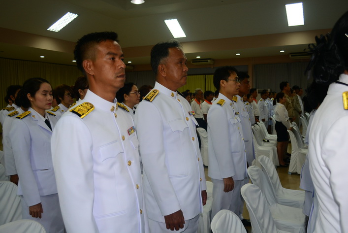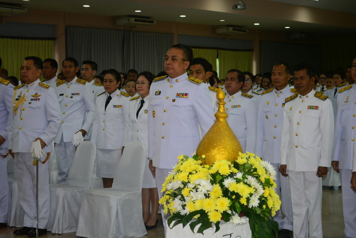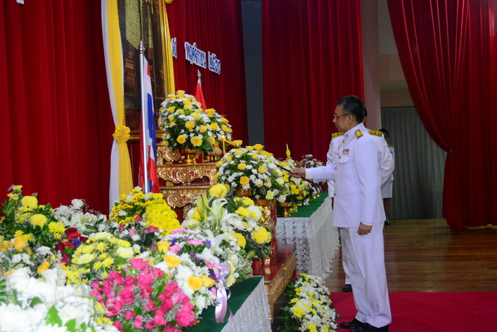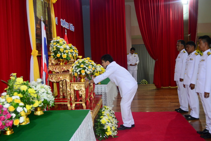 วันนี้ (14 พ.ย.2560) นายสาธิต รัตนสิงห์ ผู้อำนวยการสำนักงานทรัพยากรน้ำภาค 10 มอบหมายให้นายวรวิทย์ ชัยวิมลกุล ผู้อำนวยการส่วนพัฒนาและฟื้นฟูแหล่งน้ำ นำข้าราชการร่วมพิธีวางพานพุ่มดอกไม้สด แด่พระบาทสมเด็จพระปรมินทรมหาภูมิพลอดุลยเดช บรมนาถบพิตร เนื่องใน "วันพระบิดาแห่งฝนหลวง" ประจำปี 2560 ณ ห้องประชุมครูลำยอง โรงเรียนสุราษฎร์ธานี อำเภอเมืองฯ จังหวัดสุราษฎร์ธานี โดยมีนายวิชวุทย์ จินโต ผู้ว่าราชการจังหวัดสุราษฎร์ธานี เป็นประธาน นำส่วนราชการ ผู้แทนหน่วยงาน/องค์กร และประชาชนทุกหมู่เหล่า ร่วมพิธีโดยพร้อมเพรียงกัน ทั้งนี้ เพื่อสำนึกในพระมหากรุณาธิคุณของพระองค์อย่างหาที่สุดมิได้