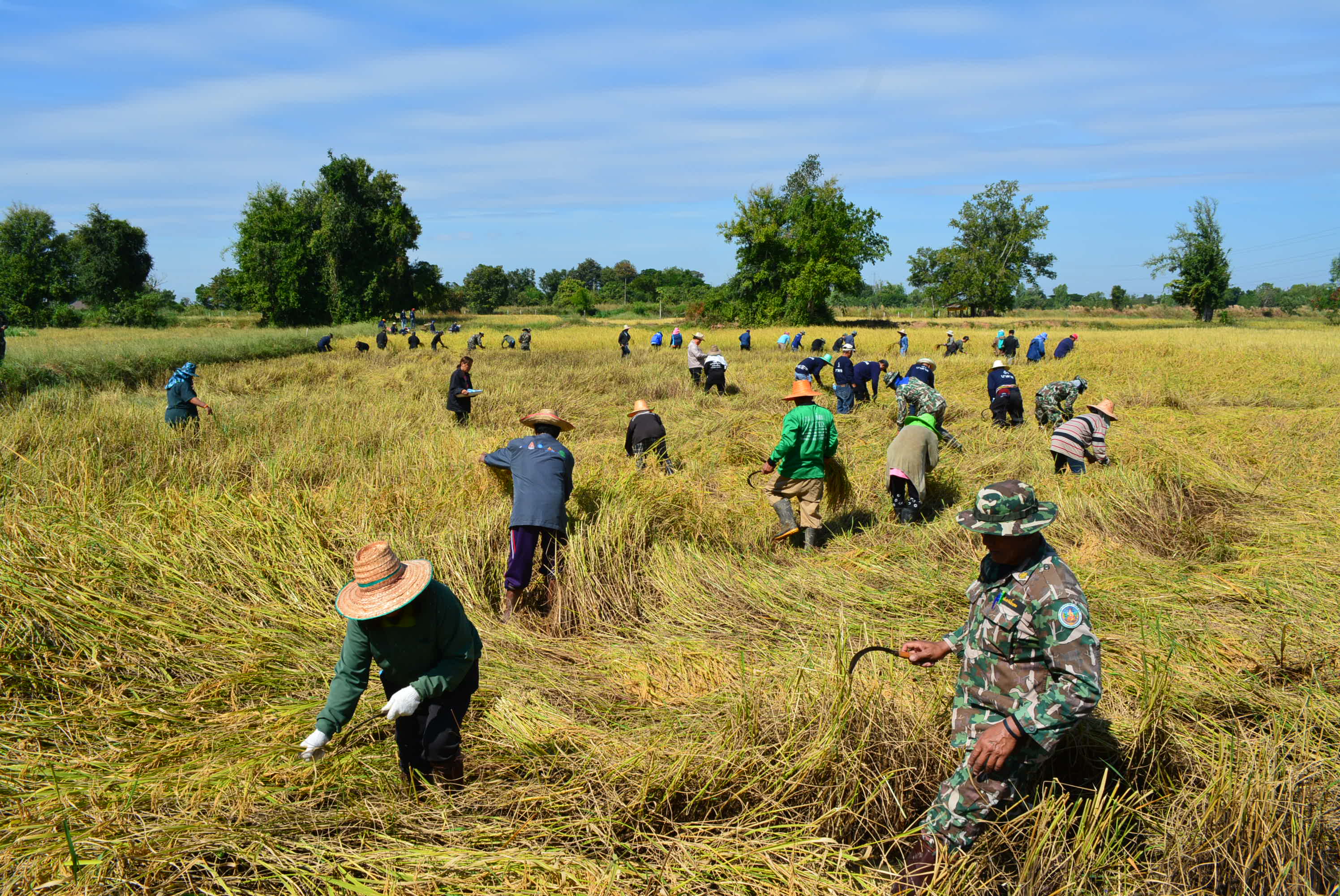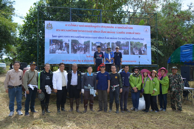 โดยกิจกรรมการดังกล่าว เป็นการร่วมแรงร่วมใจร่วมพลัง ของเจ้าหน้าที่ ทส. ทุกหน่วยงานในจังหวัดขอนแก่น ได้แก่ ๑.)สำนักงานทรัพยากรธรรมชาติและสิ่งแวดจังหวัดขอนแก่น ๒.)สำนักงานทรัพยากรน้ำภาค ๔ ขอนแก่น๓.)สำนักงานทรัพยากรน้ำบาดาลเขต ๔.)สำนักงานบริหารพื้นที่อนุรักษ์ที่ ๘ ขอนแก่น ๕.)สำนักจัดการทรัพยากรป่าไม้ที่ ๗ ขอนแก่น และ ๖.)สำนักงานสิ่งแวดล้อมภาค ๑๐ ขอนแก่น จำนวน ๒๕๐ คน ระดมพลช่วยเหลือเกษตรกร ที่ประสบอุทกภัยน้ำท่วม หลังจากหน่วยงานของกระทรวงทรัพยากรธรรมชาติและสิ่งแวดล้อมได้ระดมความช่วยเหลือ และได้สูบน้ำออกจากนาข้าวแล้ว จึงช่วยกันเก็บเกี่ยวข้าวที่แก่จัดตามอายุ เพื่อให้ได้ผลผลิตตามฤดูกาล และเป็นการลดความเสียหายที่เกิดขึ้นจากจากการเน่าเสีย ซึ่งช่วยบรรเทาความเดือดร้อนให้กับเกษตรกรอีกทางหนึ่ง และส่งเสริมให้มีคุณภาพชีวิตที่ดีขึ้น