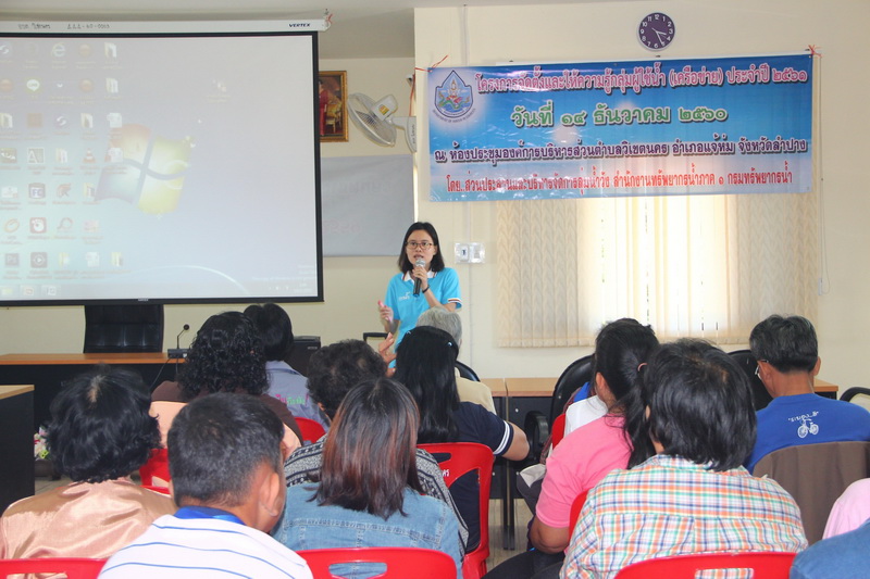 วันที่ 14 – 15 ธันวาคม 2560 ส่วนประสานและบริหารจัดการลุ่มน้ำวัง สำนักงานทรัพยากรน้ำภาค 1 จัดประชุมเชิงปฏิบัติการโครงการจัดตั้งและให้ความรู้กลุ่มผู้ใช้น้ำ (เครือข่าย) ประจำปีงบประมาณ 2561 ในพื้นที่ลุ่มน้ำวัง จำนวน 2 กลุ่ม ดังนี้