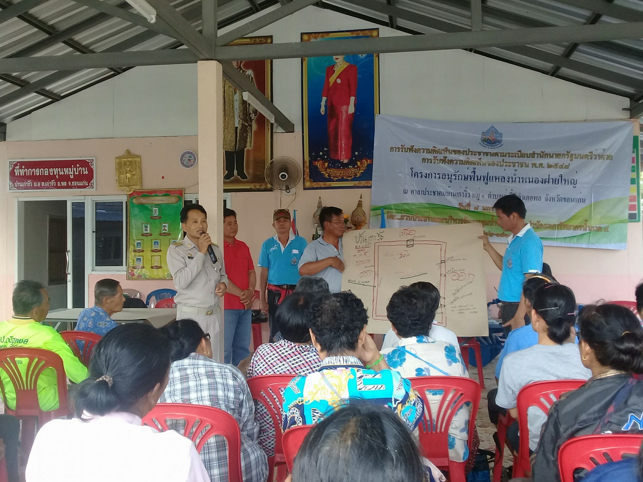 เมื่อวันที่ ๘ มกราคม ๒๕๖๑ นายสาธิต สื่อประเสริฐสุข ผู้อำนวยการสำนักงานทรัพยากรน้ำภาค ๔ ได้มอบหมายให้ส่วนประสานและบริหารจัดการลุ่มน้ำชีตอนบน จัดกิจกรรมโครงการรับฟังความคิดเห็นของประชาชนตามระเบียบสำนักนายกรัฐมนตรี พ.ศ.๒๕๔๘ “โครงการอนุรักษ์ฟื้นฟูแหล่งน้ำหนองฝายใหญ่” ซึ่งเป็นโครงการที่ขอรับการสนับสนุนงบประมาณเพื่อดำเนินการรับฟังความคิดเห็นฯ ก่อน/ขณะสำรวจเพื่อการออกแบบ ประจำปีงบประมาณ พ.ศ. ๒๕๖๑ ณ ศาลากลางบ้านเก่างิ้ว หมู่ที่๑ ตำบลเก่างิ้ว อำเภอพล จังหวัดขอนแก่น มีวัตถุประสงค์เพื่อรับฟังความคิดเห็นก่อนเริ่มดำเนินการโครงการของรัฐเพื่อเผยแพร่ข้อมูลเกี่ยวกับโครงการให้ประชาชนมีความเข้าใจที่ถูกต้อง และรับฟังความคิดเห็นของประชาชนที่มีต่อโครงการ โดยมีผู้เข้าร่วมกิจกรรมรวมทั้งสิ้น ๘๓ คนที่ประชุมมีมติเห็นชอบและให้ดำเนินโครงการในพื้นที่ได้โดยต้องการให้ขุดลอกหนองฝายใหญ่เต็มพื้นที่มีเนื้อที่ประมาณ ๓๑ ไร่ เพื่อเป็นแก้มลิงไว้กักเก็บน้ำไว้ใช้ในฤดูแล้ง ความลึกประมาณ ๓.๕ เมตร พร้อมทำคันคูรอบบริเวณแหล่งน้ำบดอัดลูกรังกว้าง ๖ เมตร ปรับขนาดทางน้ำเข้าออกจากเดิม เส้นผ่าศูนย์กลาง ๘๐ เซนติเมตร เป็น ๑๐๐ เซนติเมตร ด้านทิศตะวันออก ปรับปรุงทางน้ำข้ามเดิมซึ่งชำรุดให้โดยสร้างใหม่เป็นทางข้างน้ำข้ามแบบมีทางข้าม และให้ดำเนินการในพื้นที่ได้ โดยไม่มีปัญหาเรื่องชุมชน ไม่มีปัญหาเรื่องที่ดินโดยรอบ และไม่มีปัญหาเรื่องที่ทิ้งดิน
