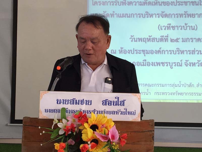วันพฤหัสบดีที่ 25 มกราคม 2561 เวลา 08.30 - 16.00 น. นายเอนก ชมพานิชย์ ผู้อำนวยการสำนักงานทรัพยากรน้ำภาค 2 มอบหมายให้นางจารุทรรศน์ สื่อประเสริฐสุข ผู้อำนวยการส่วนประสานและบริหารจัดการลุ่มน้ำป่าสัก พร้อมด้วยเจ้าหน้าที่ ดำเนินโครงการรับฟังความคิดเห็นของประชาชนเพื่อทบทวนยุทธศาสตร์และจัดทำแผนการบริหารจัดการทรัพยากรน้ำ ในพื้นที่ลุ่มน้ำสาขาแม่น้ำป่าสักส่วนที่ 2 (เวทีชาวบ้าน) ณ ห้องประชุมองค์การบริหารส่วนตำบลห้วยใหญ่ อำเภอเมืองเพชรบูรณ์ จังหวัดเพชรบูรณ์ โดยมีนายสมชาย สอนใส นายกองค์การบริหารส่วนตำบลห้วยใหญ่ กล่าวเปิดโครงการ และมีนางจารุทรรศน์ สื่อประเสริฐสุข ผู้อำนวยการส่วนประสานและบริหารจัดการลุ่มน้ำป่าสัก กล่าวรายงาน