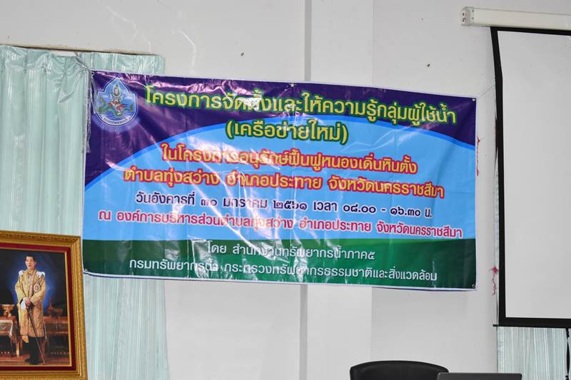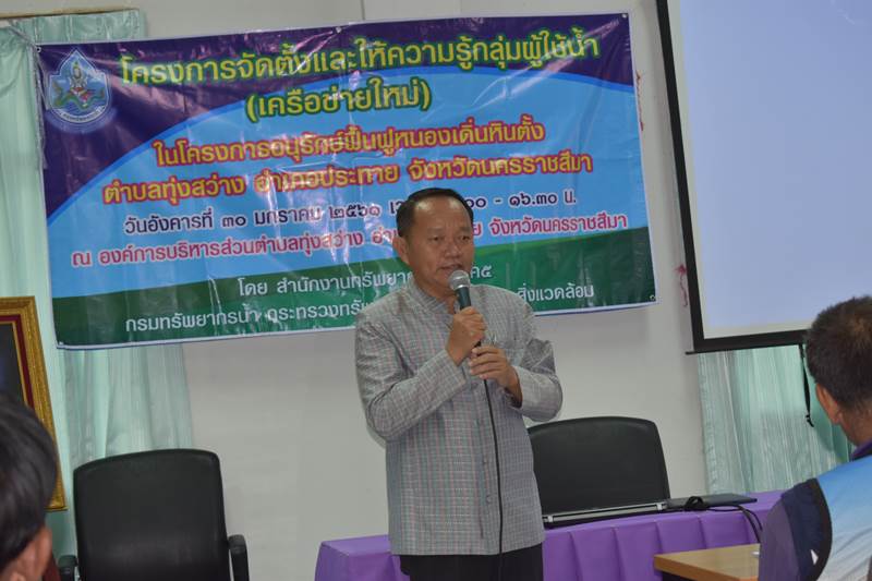 เมื่อวันอังคารที่ 30 มกราคม 2561 นายดำรงค์ นำพาโชคชัย ผู้อำนวยการสำนักงานทรัพยากรน้ำภาค 5 ได้มอบหมายให้ส่วนประสานและบริหารจัดการลุ่มน้ำมูลตอนบน ดำเนินการจัดทำโครงการจัดตั้งและให้ความรู้กลุ่มผู้ใช้น้ำ (เครือข่ายใหม่) ในโครงการอนุรักษ์ฟื้นฟูหนองเดิ่นหินตั้ง บ้านวังม่วง หมู่ที่ 1 ตำบลทุ่งสว่าง อำเภอประทาย จังหวัดนครราชสีมา