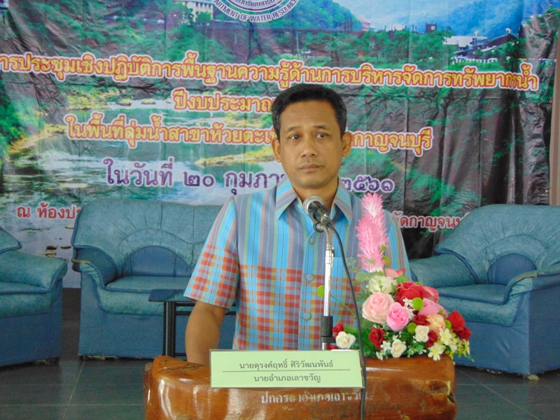 เมื่อวันอังคารที่ ๒๐ กุมภาพันธ์ ๒๕๖๑ สำนักงานทรัพยากรน้ำภาค ๗ โดยส่วนประสานและบริหารจัดการลุ่มน้ำแม่กลอง จัดประชุมเชิงปฏิบัติการพื้นฐานความรู้ด้านการบริหารจัดการทรัพยากรน้ำ ปีงบประมาณ ๒๕๖๑ ในพื้นที่ลุ่มน้ำสาขาห้วยตะเพิน จังหวัดกาญจนบุรี ณ ห้องประชุมอำเภอเลาขวัญ จังหวัดกาญจนบุรี โดยมี นายดุรงค์ฤทธิ์ ศิริวัฒนพันธ์ นายอำเภอเลาขวัญ เป็นประธานพิธีเปิด วัตถุประสงค์เพื่อเสริมสร้างองค์ความรู้ด้านการบริหารจัดการทรัพยากรน้ำในพื้นที่ แนวทางและวิธีการเขียนโครงการด้านการบริหารจัดการอนุรักษ์และฟื้นฟูแหล่งน้ำมาประยุกต์ใช้ในพื้นที่ตามความเหมาะสม