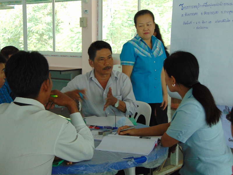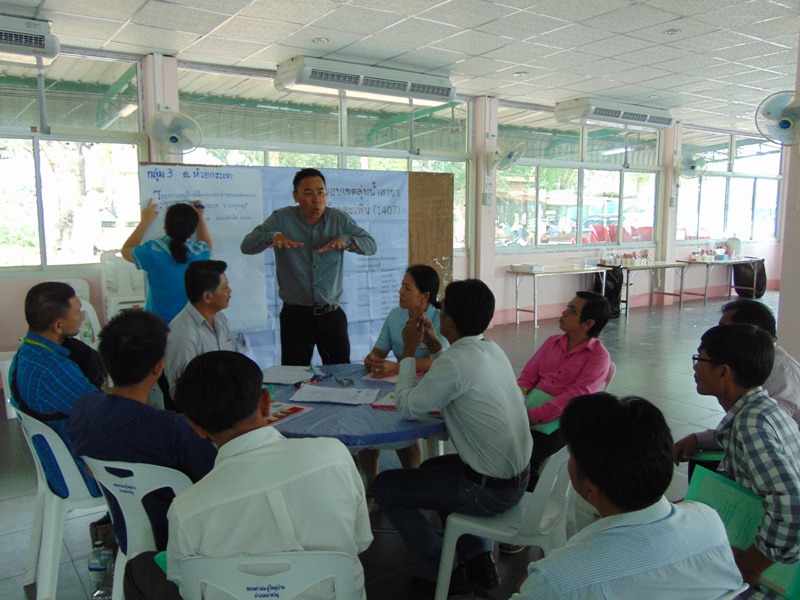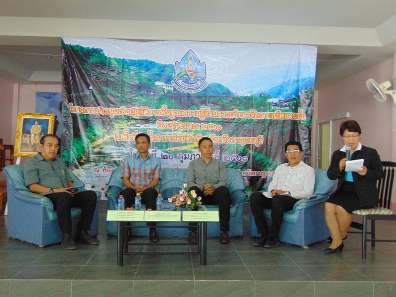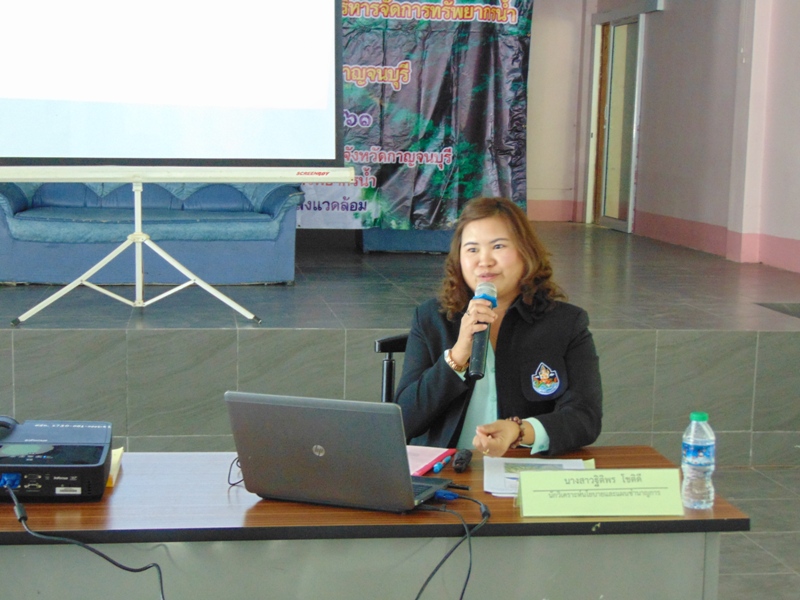 หลังจากพิธีเปิด ช่วงแรกเป็นเวทีเสวนา หัวข้อ “สถานการณ์และประเด็นปัญหาทรัพยากรธรรมชาติและสิ่งแวดล้อมในพื้นที่/แผนยุทธศาสตร์การบริหารจัดการทรัพยากรน้ำ” ทีมวิทยากรเสวนา ได้แก่ นายอำเภอเลาขวัญ ผู้แทนจากสำนักงานชลประทานที่ ๑๓ ผู้แทนจากสำนักบริหารพื้นที่อนุรักษ์ที่ ๓ ผู้แทนจาก สำนักงานทรัพยากรน้ำภาค ๗ หลังจากนั้น เสริมสร้างความรู้ความเข้าใจ หัวข้อ “ข้อมูลเพื่อการบริหารจัดการพื้นที่เสี่ยงภัยแล้งในลุ่มน้ำแม่กลอง” หัวข้อ “แนวทางและวิธีการศึกษาวางโครงการพัฒนาแหล่งน้ำ” โดยวิทยากรภายใน จากสำนักงานทรัพยากรน้ำภาค ๗ และแบ่งกลุ่ม ฝึกปฏิบัติการเขียนโครงการฯ เพื่อขอรับการสนับสนุนงบประมาณที่ถูกต้องตามหลักวิชาการ ทั้งนี้ มีผู้บริหาร เจ้าหน้าที่จากองค์กรปกครองส่วนท้องถิ่น กำนัน ผู้ใหญ่บ้าน ในเขตพื้นที่อำเภอเลาขวัญ อำเภอห้วยกระเจา และอำเภอหนองปรือ คณะทำงานบริหารจัดการลุ่มน้ำสาขาห้วยตะเพิน หน่วยงานที่เกี่ยวข้อง เข้าร่วมประชุมฯ รวมประมาณ ๙๐ คน