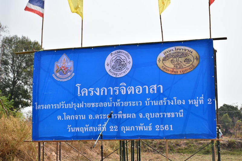 วันที่ 22 กุมภาพันธ์ 2561 สำนักงานทรัพยากรน้ำภาค 11 อำเภอตระการพืชผลและองค์กรปกครองส่วนท้องถิ่น กำนัน ผู้ใหญ่บ้าน ร่วมดำเนินโครงการจิตอาสาปรับปรุงฝายชะลอน้ำห้วยระเว โดยมีนายวิเวช สุทธิประภา ผู้อำนวยการสำนักงานทรัพยากรน้ำภาค 11 ร่วมกับนายลิขิต นพรัตน์ ปลัดอำเภอผู้แทนนายอำเภอให้เกียรติมาเป็นประธานเปิดงาน ณ บ้านสร้างโอง ตำบลโคกจาน อำเภอตระการพืชผล จังหวัดอุบลราชธานี ทั้งนี้มีวัตถุประสงค์เพื่อเพิ่มความจุปริมาณเก็บกักน้ำในท้องถิ่นและทำให้เกิดความสัมพันธ์อันดีระหว่างหน่วยงานราชการกับประชาชนในพื้นที่ พร้อมกับเป็นการสร้างจิตสำนึกให้เกิดความรักและหวงแหนทรัพยากรธรรมชาติต่อไป