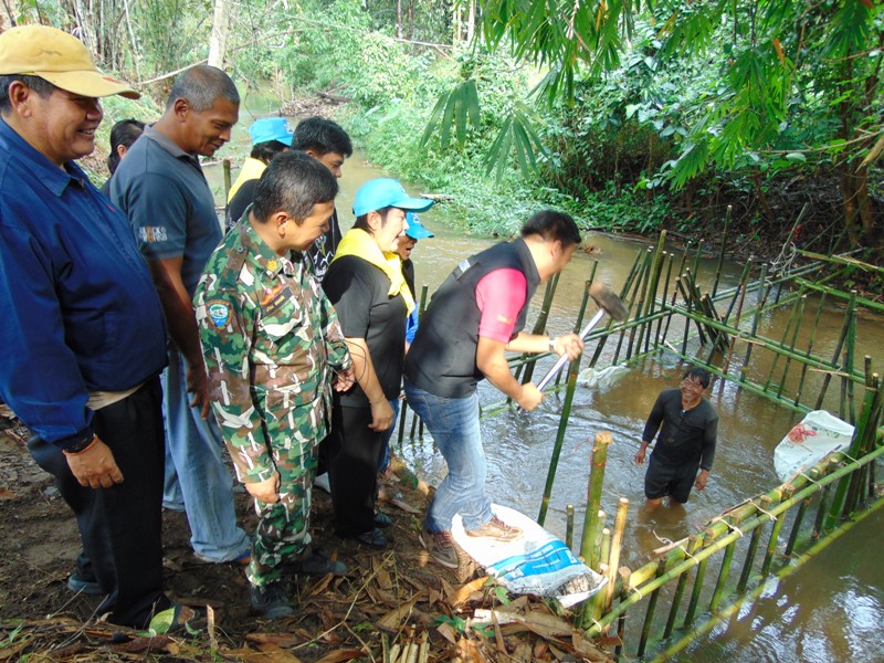 กิจกรรมในวันนี้ เกิดจากความต้องการของคณะกรรมการกลุ่มผู้ใช้น้ำห้วยดินโส เพื่อแก้ไขปัญหาขาดแคลนน้ำ เนื่องจากแหล่งน้ำห้วยดินโส ซึ่งมีปริมาณน้ำไหลหลากมากในฤดูฝนแต่กลับแห้งผากในฤดูแล้ง จึงได้กำหนดกิจกรรมทำฝายมีชีวิต ซึ่งจัดขึ้นเป็นปีที่ ๒ โดยมีกรรมการกลุ่มผู้ใช้น้ำฯ ผู้ซึ่งมีความรู้ ประสบการณ์ในการทำฝายมีชีวิต เป็นวิทยากรให้ความรู้ พร้อมฝึกปฏิบัติให้กับผู้เข้าร่วมกิจกรรม ซึ่งประกอบด้วย สมาชิกผู้ใช้น้ำ ผู้นำท้องถิ่น ผู้นำท้องที่ จิตอาสา ส่วนราชการในพื้นที่ตำบลสหกรณ์นิคม ส่วนราชการอำเภอทองผาภูมิ สถาบันการศึกษา เครือข่ายภาคเอกชนผู้ให้การสนับสนุน และผู้ร่วมสังเกตการณ์ รวมประมาณ ๑๕๐ คน
