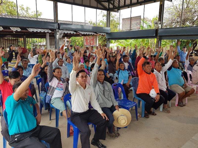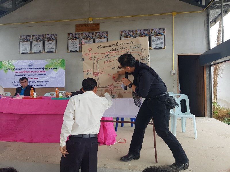 ที่ประชุมมีมติเห็นชอบและให้ดำเนินโครงการในพื้นที่ได้ โดยต้องการให้ขุดลอกหนองโปร่งสี่เหลี่ยมแบบเต็มพื้นที่ ≈๕๗ ไร่ แบบไม่มีชานพัก โดยเริ่มจากทิศตะวันตกไปยังทิศตะวันออก ความลึก ≈๖.๕ เมตร, ทำคันดินรอบแหล่งน้ำพร้อมลงลูกรังบดอัดแน่น กว้าง ≈ ๖ เมตร สูง ≈ 5 เมตร, ก่อสร้างบันไดลงแหล่งน้ำ ๒ จุด, ท่อระบายน้ำเข้าเดิม ๓ จุด ต้องการให้รื้อออกและก่อสร้างใหม่ตามแบบมาตรฐานกรมทรัพยากรน้ำ ณ จุดเดิม, ท่อระบายน้ำออกเดิม จุดที่ ๑ บริเวณฝายน้ำล้น มข. เดิม ต้องการให้ก่อสร้างใหม่เป็นฝายน้ำล้นแบบมีทางน้ำข้าม (Wet crossing) จุดที่ ๒ บริเวณด้านทิศใต้ ต้องการให้ก่อสร้างใหม่เป็นท่อระบายน้ำขนาดเส้นผ่าศูนย์กลาง ๑๐๐ เซนติเมตร,ไม่มีปัญหาเรื่องชุมชน ไม่มีปัญหาเรื่องที่ดินโดยรอบ และไม่มีปัญหาพื้นที่ทิ้งดิน โดยดินจากการขุดลอกหากเหลือจากการทำคันดินแล้ว ชาวบ้านต้องการให้นำไปถมพื้นที่สาธารณะประโยชน์ในชุมชน จำนวน ๑๗ แห่ง
