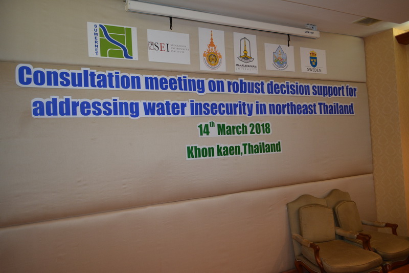เมื่อวันที่ ๑๔ มีนาคม ๒๕๖๑ สำนักงานทรัพยากรน้ำภาค ๔ ร่วมกับสถาบันสิ่งแวดล้อมสตอกโฮล์ม (Stockholm Environment Institute : SEI) จัดประชุมการประยุกต์ใช้เครื่องมือและกระบวนการเพื่อใช้สนับสนุนการวางแผนยุทธศาสตร์และการบริหารจัดการความมั่นคงด้านทรัพยากรน้ำ ในภาคตะวันออกเฉียงเหนือของประเทศไทย “Consultation meeting on robust decision support for addressing water insecurity in northeast Thailand” โดยนายสาธิต สื่อประเสริฐสุข ผู้อำนวยการสำนักงานทรัพยากรน้ำภาค ๔ เป็นประธานในพิธีเปิดการประชุม ณ ห้องประชุมกรีนบี โรงแรมโฆษะ อำเภอเมืองขอนแก่น จังหวัดขอนแก่น มีผู้เข้าร่วมประชุม ประกอบด้วยตัวแทนจากคณะทำงานและหน่วยงานต่าง ๆ ที่เกี่ยวข้อง ได้แก่ สำนักงานทรัพยากรน้ำภาค ๔ สำนักชลประทานที่ ๖ โครงการชลประทานขอนแก่น สำนักงานสิ่งแวดล้อมภาคที่ 10 สำนักงานทรัพยากรธรรมชาติและสิ่งแวดล้อมจังหวัดขอนแก่น อำเภอกระนวน อำเภอซำสูง คณะทำงานลุ่มน้ำห้วยสายบาตร มหาวิทยาลัยขอนแก่น มหาวิทยาลัยมหาสารคาม มหาวิทยาลัยเทคโนโลยีราชมงคลอีสาน วิทยาเขตขอนแก่น ผู้ทรงคุณวุฒิที่ปรึกษาคณะกรรมการลุ่มน้ำชี และสถาบันสิ่งแวดล้อมสตอกโฮล์ม (Stockholm Environment Institute : SEI) รวมทั้งสิ้นจำนวน ๒๙ คน