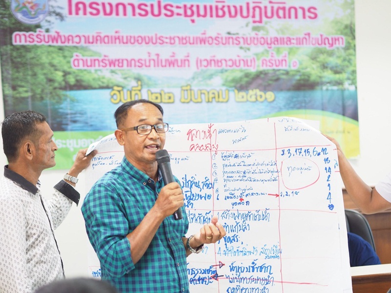 >แบ่งกลุ่มทบทวนสถานการณ์ประเด็นปัญหา วิเคราะห์เป้าหมายเชิงพื้นที่ และแนวทางแก้ไขปัญหาด้านการบริหารจัดการทรัพยากรน้ำ