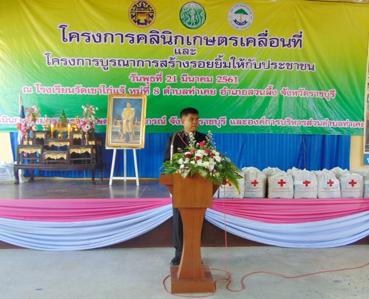 เมื่อวันพุธที่ ๒๑ มีนาคม ๒๕๖๑ ผู้อำนวยการสำนักงานทรัพยากรน้ำภาค ๗ มอบหมายให้ส่วนประสานและบริหารจัดการลุ่มน้ำแม่กลอง ร่วมโครงการ “บูรณาการสร้างรอยยิ้มให้แก่ประชาชน” ประจำปีงบประมาณ พ.ศ.๒๕๖๑ จังหวัดราชบุรี ณ บริเวณโรงเรียนวัดเขาไก่แจ้ หมู่ที่ ๘ ตำบลท่าเคย อำเภอสวนผึ้ง จังหวัดราชบุรี โดยมีนายวิสิษฎ์ พวงเพชร รองผู้ว่าราชการจังหวัดราชบุรี เป็นประธานในพิธี