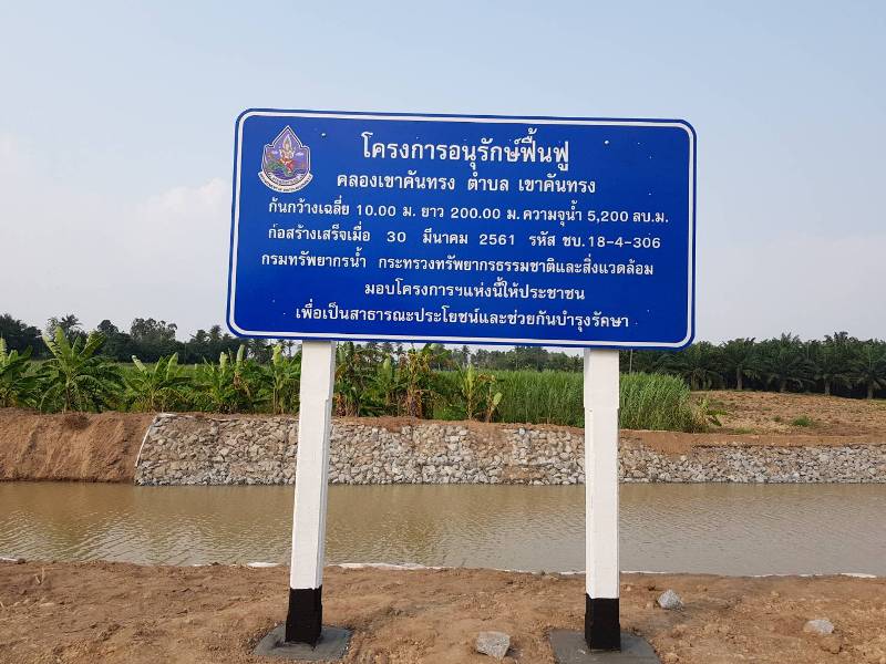๒. โครงการอนุรักษ์ฟื้นฟูคลองเขาคันทรง ม.๗ ต.เขาคันทรง อ.ศรีราชา จ.ชลบุรี งบประมาณปี ๒๕๖๑ ซึ่งมีผลการดำเนินงาน ๙๙.๗๒% พื้นที่รับประโยชน์ ๑๖ ไร่ ๘๒ ครัวเรือน