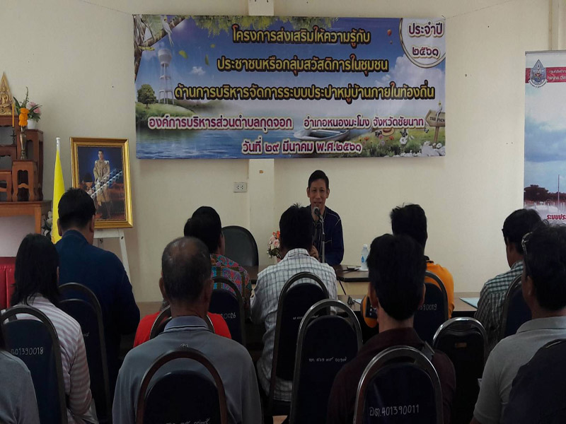 วันที่ 29 มีนาคม 2561 นายเอนก ชมพานิชย์ ผู้อำนวยการสำนักงานทรัพยากรน้ำภาค 2 มอบหมายให้นายยุทธนา ชมวงศ์ ผู้อำนวยการส่วนบริหารจัดการน้ำที่ 3 นครสวรรค์ พร้อมเจ้าหน้าที่ฯ ร่วมเป็นวิทยากรให้ความรู้กับคณะกรรมการบริหารกิจการและบำรุงรักษาระบบประปา หมู่บ้าน และประชาชนในพื้นที่ ประจำปีงบประมาณ พ.ศ. 2561 โดยมีวัตถุประสงค์เพื่อส่งเสริมให้คณะกรรมการบริหารกิจการและบำรุงรักษาระบบ ประปาหมู่บ้านของระบบประปาหมู่บ้านทุกแห่งในตำบลกุดจอก อำเภอหนองมะโมง จังหวัดชัยนาท สามารถนำไปใช้ประโยชน์ในการปฏิบัติหน้าที่ได้ ก่อให้เกิดประโยชน์สูงสุดต่อประชาชน โดยมีผู้เข้ารับการอบรมในครั้งนี้จำนวน 28 คน และมีนายพลกฤต พวงวลัยสิน นายอำเภอหนองมะโมง เป็นประธานในพิธี