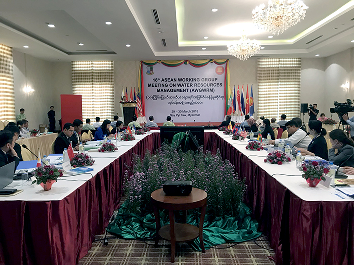 รองอธิบดีกรมทรัพยากรน้ำ (นายสมนึก สุขช่วย) พร้อมคณะ ได้เดินทางไปประชุมคณะทำงานอาเซียนว่าด้วยการจัดการทรัพยากรน้ำ ครั้งที่ 18 (18th ASEAN Working Group on Water Resources Management: AWGWRM) ระหว่างวันที่ 29-30 มีนาคม 2561 ณ กรุงเนปิดอว์ สาธารณรัฐแห่งสหภาพเมียนมา เพื่อรายงานและติดตามความคืบหน้าการดำเนินงานที่ได้มีการตกลงกันในที่ประชุมที่ผ่านมา และพิจารณาแผนการดำเนินการในระยะต่อไป