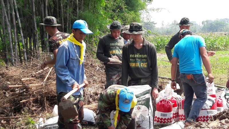 ในการนี้ส่วนประสานและบริหารจัดการลุ่มน้ำกกและโขง ร่วมสนับสนุนวิทยากรให้ความรู้ในการสร้างฝายชะลอน้ำและสนับสนุนน้ำดื่ม จำนวน 300 ขวด