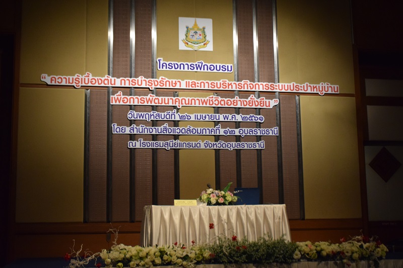 วันที่ 26 เมษายน 2561 นายวิเวช สุทธิประภา ผู้อำนวยการสำนักงานทรัพยากรน้ำภาค 11 ร่วมเป็นวิทยากรโครงการฝึกอบรมหลักสูตร “ความรู้เบื้องต้น การบำรุงรักษา และการบริหารกิจการระบบประปาหมู่บ้านเพื่อการพัฒนาคุณภาพชีวิตอย่างยิ่งยืน” ให้เพื่อถ่ายทอดประสบการณ์ด้านระบบประปาหมู่บ้าน โดยมีนายประเดิม ภาคแก้ว ผู้อำนวยการสำนักงานสิ่งแวดล้อมภาคที่ 12 เป็นประธาน ณ ห้องทับทิมสยาม 3 ชั้น 5 โรงแรมสุนีย์ แกรนด์ โฮเทล ตำบลในเมือง อำเภอเมือง จังหวัดอุบลราชธานี