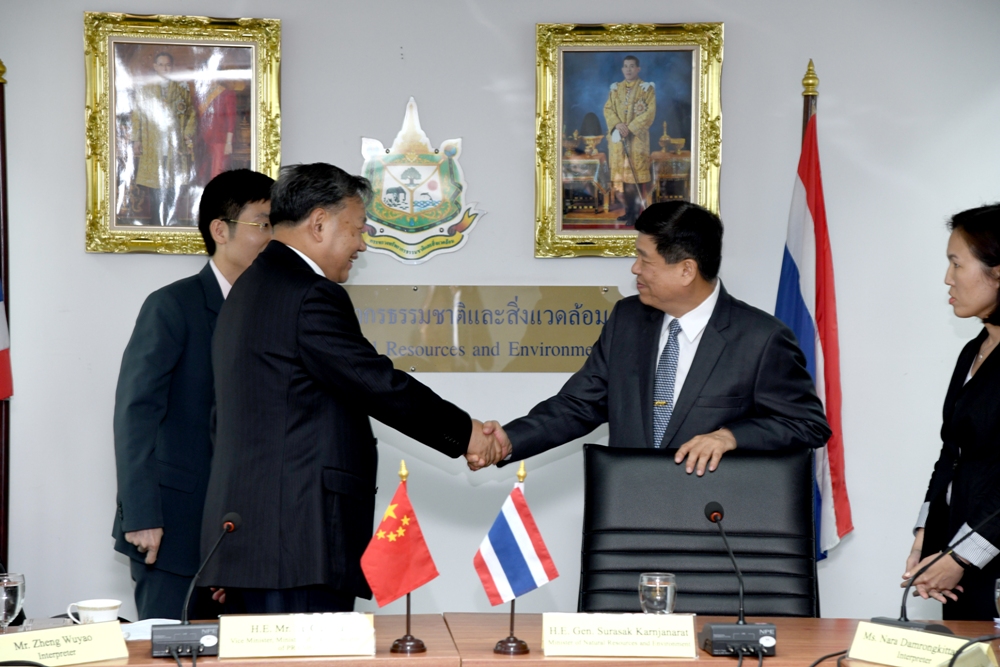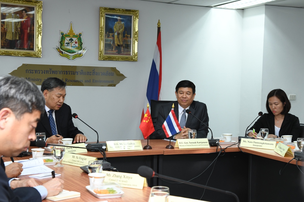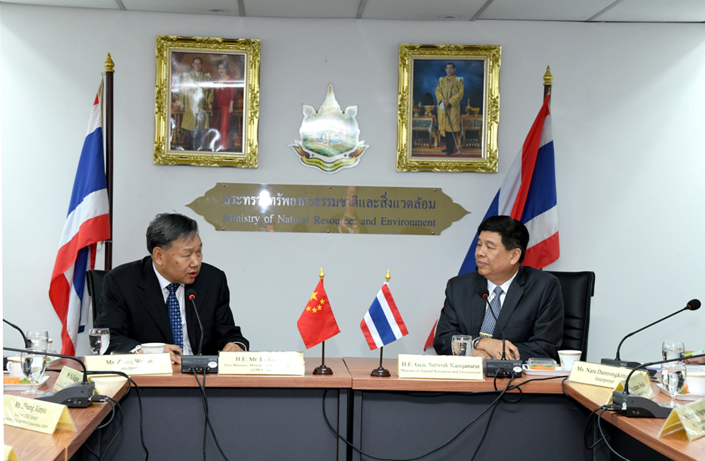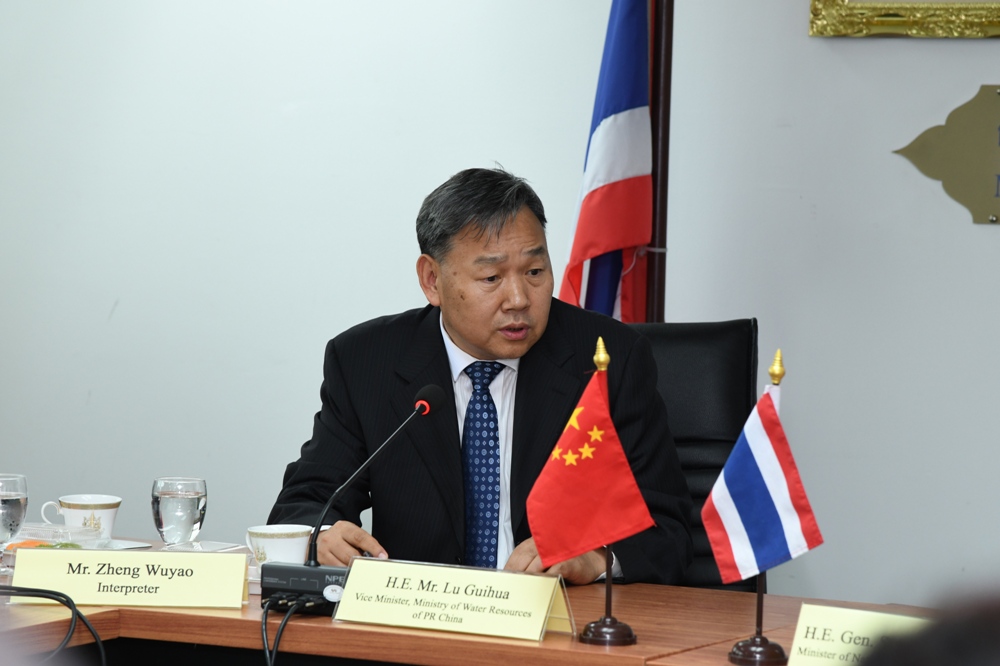 วันที่ 26 เมษายน 2561 H.E. Mr. Lu Guihua รัฐมนตรีช่วยว่าการกระทรวงทรัพยากรน้ำแห่งสาธารณรัฐประชาชนจีนและคณะ ได้เข้าเยี่ยมคารวะ พลเอก สุรศักดิ์ กาญจนรัตน์ รัฐมนตรีว่าการกระทรวงทรัพยากรธรรมชาติและสิ่งแวดล้อม และได้เจรจาความร่วมมือด้านน้ำภายใต้บันทึกความเข้าใจว่าด้วยความร่วมมือในสาขาทรัพยากรน้ำระหว่างสองกระทรวง โดยจะร่วมมือกันบริหารจัดการน้ำเพื่อให้บรรลุเป้าหมายการพัฒนาที่ยั่งยืน ในการนี้ไทยเสนอให้จีนควบคุมการระบายน้ำจากเขื่อนในแม่น้ำโขงเพื่อป้องกันผลกระทบต่อระบบนิเวศและวิถีชีวิตของประชาชนไทย โดยมีการแจ้งข้อมูลฮอตไลน์ล่วงหน้าในภาวะฉุกเฉิน ทั้งนี้ จีนยินดีร่วมมือพัฒนากลไกการหารือแลกเปลี่ยนข้อมูลน้ำ และร่วมพัฒนานวัตกรรมการจัดการน้ำเพื่อมิตรภาพที่ดีสืบไป