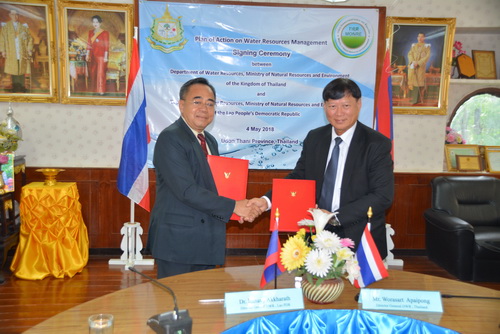 เมื่อวันที่ 4 พฤษภาคม 2561 นายวรศาสน์ อภัยพงษ์ อธิบดีกรมทรัพยากรน้ำ กับ นายอินทวี อัคราช อธิบดีกรมทรัพยากรน้ำแห่ง สปป.ลาว ได้ลงนามแผนความร่วมมือด้านทรัพยากรน้ำไทย-ลาว (พ.ศ.2561-2564) ภายใต้บันทึกความเข้าใจระหว่างกระทรวงทรัพยากรธรรมชาติและสิ่งแวดล้อมของไทย กับของ สปป.ลาว ณ สำนักงานทรัพยากรน้ำภาค3 จ.อุดรธานี โดยมี 4 แผนงานหลัก คือ การพัฒนาลุ่มน้ำ การพัฒนาศูนย์สาธิต การจัดสรรน้ำ และการวิจัยพัฒนา ในการนี้ ได้ร่วมกันศึกษาแนวทางการพัฒนาต่อยอดการใช้ประโยชน์จากอ่างน้ำพาน อ.สร้างคอม จ.อุดรธานี ซึ่งกรมทรัพยากรน้ำได้พัฒนาฟื้นฟูไว้ ให้ขยายผลสู่การท่องเที่ยวเชิงนิเวศและศูนย์กลางเศรษฐกิจชุมชน โดยการมีส่วนร่วมแบบประชารัฐด้วย