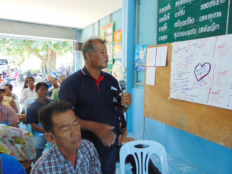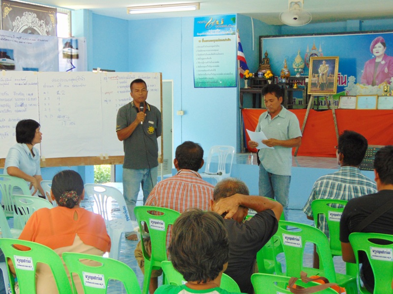 ในการนี้ วิทยากรภายในจากสำนักงานทรัพยากรน้ำภาค ๗ ได้เสริมสร้างความรู้ความเข้าใจ หัวข้อ ศาสตร์พระราชาสู่การร่วมคิดร่วมทำร่วมตัดสินใจพัฒนาบริหารจัดการน้ำอย่างยั่งยืน/ การดูแลบำรุงรักษาแหล่งน้ำและการใช้ประโยชน์ร่วมกัน/ บทบาทหน้าที่ของกลุ่มผู้ใช้น้ำกับการบริหารจัดการทรัพยากรน้ำในพื้นที่/ ความรู้ความเข้าใจบทบาทหน้าที่ของอาสาสมัครพิทักษ์ทรัพยากรธรรมชาติและสิ่งแวดล้อมหมู่บ้าน (ทสม.) พร้อมกับรับสมัครสมาชิก หลังจากนั้น ขั้นตอนการคัดเลือกคณะกรรมการกลุ่มผู้ใช้น้ำฯ การร่างระเบียบ ข้อบังคับกลุ่มฯ พร้อมกับแบ่งกลุ่มระดมความคิดเห็นประเด็นปัญหา แนวทางแก้ไขด้วยกระบวนการจัดทำแผน ได้แก่ แผนพึ่งตนเอง/แผนร่วมมือกันทำ/และแผนขอรับการสนับสนุนจากภายนอก หลังจากนั้นได้นำร่างระเบียบ ข้อบังคับกลุ่มผู้ใช้น้ำฯที่คณะกรรมการทำการร่าง เข้าที่ประชุมสมาชิกเพื่อร่วมกันพิจารณาเป็นมติบังคับใช้ร่วมกัน ทั้งนี้ มีผู้เข้าร่วมประชุมประมาณ ๑๑๐ คน