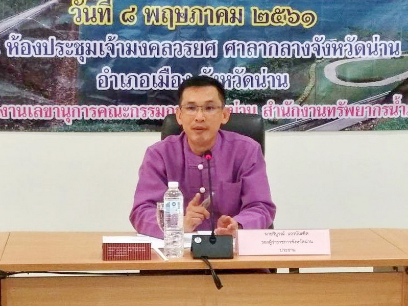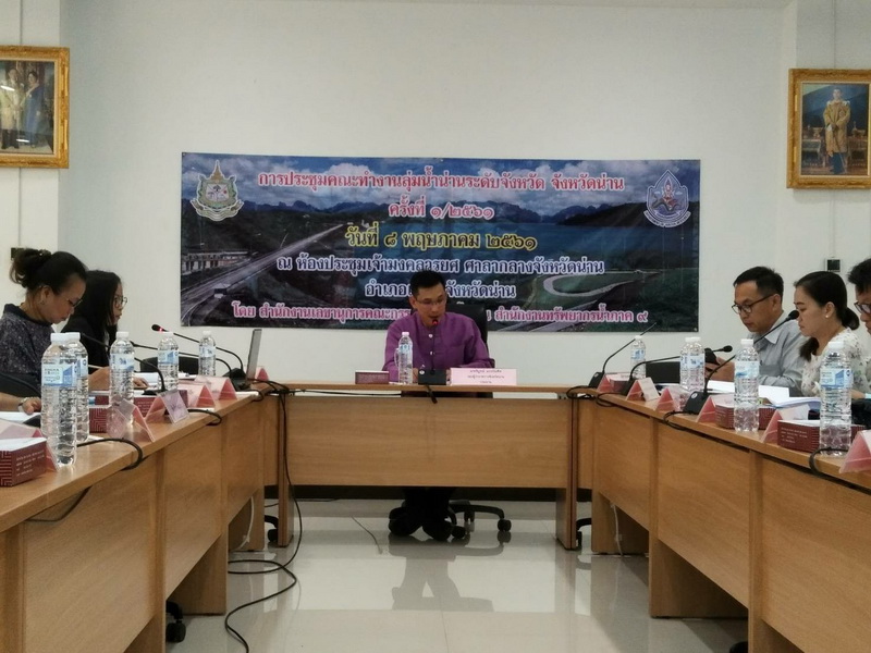 ส่วนประสานและบริหารจัดการลุ่มน้ำน่าน จัดประชุมคณะทำงานลุ่มน้ำน่านระดับจังหวัด จังหวัดน่าน ครั้งที่ 1/2561 วันที่ 8 พฤษภาคม พ.ศ. 2561 เวลา 10.00 – 15.30 น. ณ ห้องประชุมเจ้ามงคลวรยศ ศาลากลางจังหวัดน่าน อำเภอเมือง จังหวัดน่าน โดยมีนายวิบูรณ์ แววบัณฑิต รองผู้ว่าราชการจังหวัดน่าน เป็นประธานในการประชุม และนางนงเยาว์ กันธิยะ นักวิเคราะห์นโยบายและแผนชำนาญการ ทำหน้าที่ผู้ช่วยเลขาฯ ทั้งนี้ มีผู้เข้าร่วมประชุม ประกอบด้วย คณะทำงานลุ่มน้ำน่านระดับจังหวัด จังหวัดน่าน ส่วนราชการที่เกี่ยวข้อง องค์กรผู้ใช้น้ำที่เกี่ยวข้อง เจ้าหน้าที่สำนักงานทรัพยากรน้ำภาค 9 และผู้สังเกตการณ์ รวมจำนวน 32 คน