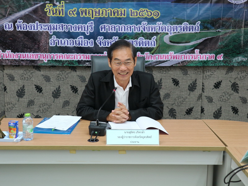ส่วนประสานและบริหารจัดการลุ่มน้ำน่าน จัดประชุมคณะทำงานลุ่มน้ำน่านระดับจังหวัด จังหวัดอุตรดิตถ์ ครั้งที่ 1/2561 วันที่ ๙ พฤษภาคม พ.ศ. 2561 เวลา 10.00 – 15.30 น. ณ ห้องประชุมสวางคบุรี ศาลากลางจังหวัดอุตรดิตถ์ อำเภอเมือง จังหวัดอุตรดิตถ์ โดยมีนายสุมิตร เกิดกล่ำ รองผู้ว่าราชการจังหวัดอุตรดิตถ์ เป็นประธานในการประชุม และนายพงษ์ศักดิ์ ทองกู่ นักวิเคราะห์นโยบายและแผนชำนาญการ ทำหน้าที่ผู้ช่วยเลขาฯ ทั้งนี้ มีผู้เข้าร่วมประชุม ประกอบด้วย คณะทำงานลุ่มน้ำน่านระดับจังหวัด จังหวัดอุตรดิตถ์ ส่วนราชการที่เกี่ยวข้อง องค์กรผู้ใช้น้ำที่เกี่ยวข้อง เจ้าหน้าที่สำนักงานทรัพยากรน้ำภาค 9 และผู้สังเกตการณ์ รวมจำนวน 34 คน