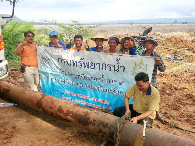 เมื่อวันที่ 7-16 พฤษภาคม 2561 นายดำรงค์ นำพาโชคชัย ผู้อำนวยการสำนักงานทรัพยากรน้ำภาค 5 มอบหมายให้ส่วนบริหารจัดการน้ำ จัดชุดปฏิบัติการเพื่อแก้ไขปัญหาการขาดแคลนน้ำอุปโภคบริโภคจากภัยแล้ง ให้กับประชาชนบ้านยางกระทุง หมู่ที่ 2 และหมู่ที่18 โดยการติดตั้งเครื่องสูบน้ำ ขนาด 12 นิ้ว จำนวน 1 เครื่องพร้อมท่ออุปกรณ์และเจ้าหน้าที่ ดำเนินการสูบน้ำจากคลองแก้มลิง อ่างเก็บน้ำลำสำลาย แหล่งน้ำต้นทุนผ่านท่อส่งน้ำขนาด 12 นิ้ว ระยะทาง 50 เมตร ไปยังสระน้ำที่เป็นแหล่งน้ำระบบประปาหมู่บ้าน บ้านยางกระทุง หมู่ที่ 2 ใช้ผลิตน้ำประปาสำหรับอุปโภคบริโภคของหมู่บ้าน ปริมาณสูบน้ำ 76,800 ลบ.ม.