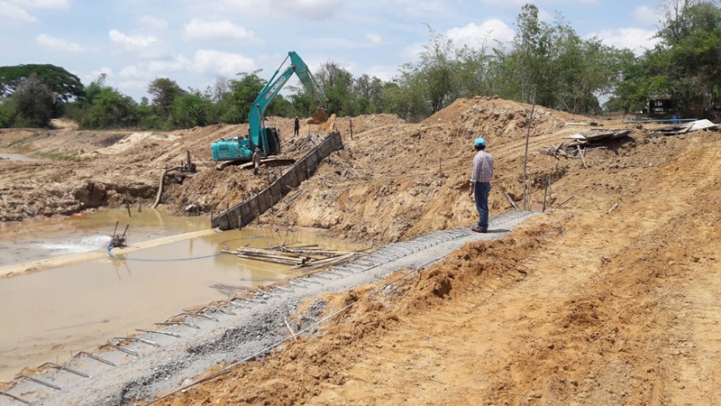 สทภ.11 ตรวจติดตามความก้าวหน้าการดำเนินโครงการปรับปรุงฟื้นฟูแหล่งน้ำฝายห้วยเรือ จังหวัดอุบลราชธานี