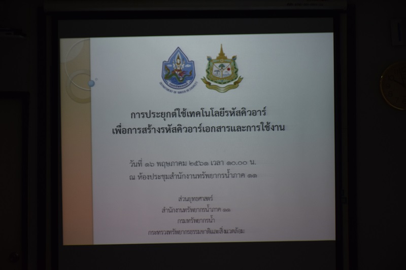 วันที่ 16 พฤษภาคม 2561 สำนักงานทรัพยากรน้ำภาค 11 โดย ส่วนยุทธศาสตร์ จัดประชุมถ่ายทอดองค์ความรู้ประกอบตัวชี้วัด เรื่อง การสร้างรหัสคิวอาร์เอกสารและการใช้งาน การจัดประชุมครั้งนี้มีวัตถุประสงค์ เพื่อเผยแพร่องค์ความรู้แก่บุคลากรสำนักงานทรัพยากรน้ำภาค 11 ได้นำองค์ความรู้มาประยุกต์ใช้ในปฏิบัติงานให้มีประสิทธิภาพและเกิดประโยชน์ต่อองค์กรมากขึ้น เพื่อลดปริมาณการใช้กระดาษ ลดเงินงบประมาณในการซื้อกระดาษ เพื่อความสะดวกและรวดเร็วในการสื่อสารระหว่างผู้ส่งและผู้รับ ลดพื้นที่การจัดเก็บเอกสาร โดยมีนายวิเวช สุทธิประภา ผู้อำนวยการสำนักงานทรัพยากรน้ำภาค 11 เป็นประธาน ณ ห้องประชุมสำนักงานทรัพยากรน้ำภาค 11 จังหวัดอุบลราชธานี