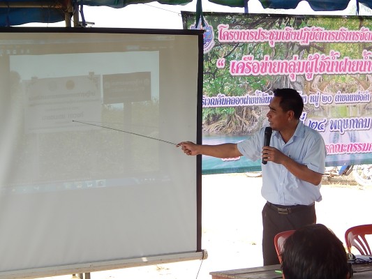 มีวัตถุประสงค์เพื่อสนับสนุนกลุ่มเครือข่ายผู้ใช้น้ำให้มีความรู้ ความเข้าใจ และมีศักยภาพในการบริหารจัดการทรัพยากรน้ำ และเข้ามามีส่วนร่วมในการดูแลรักษาผลประโยชน์ของทรัพยากรธรรมชาติในท้องถิ่นของตนเอง อย่างเข้มแข็งและยั่งยืน ต่อไป