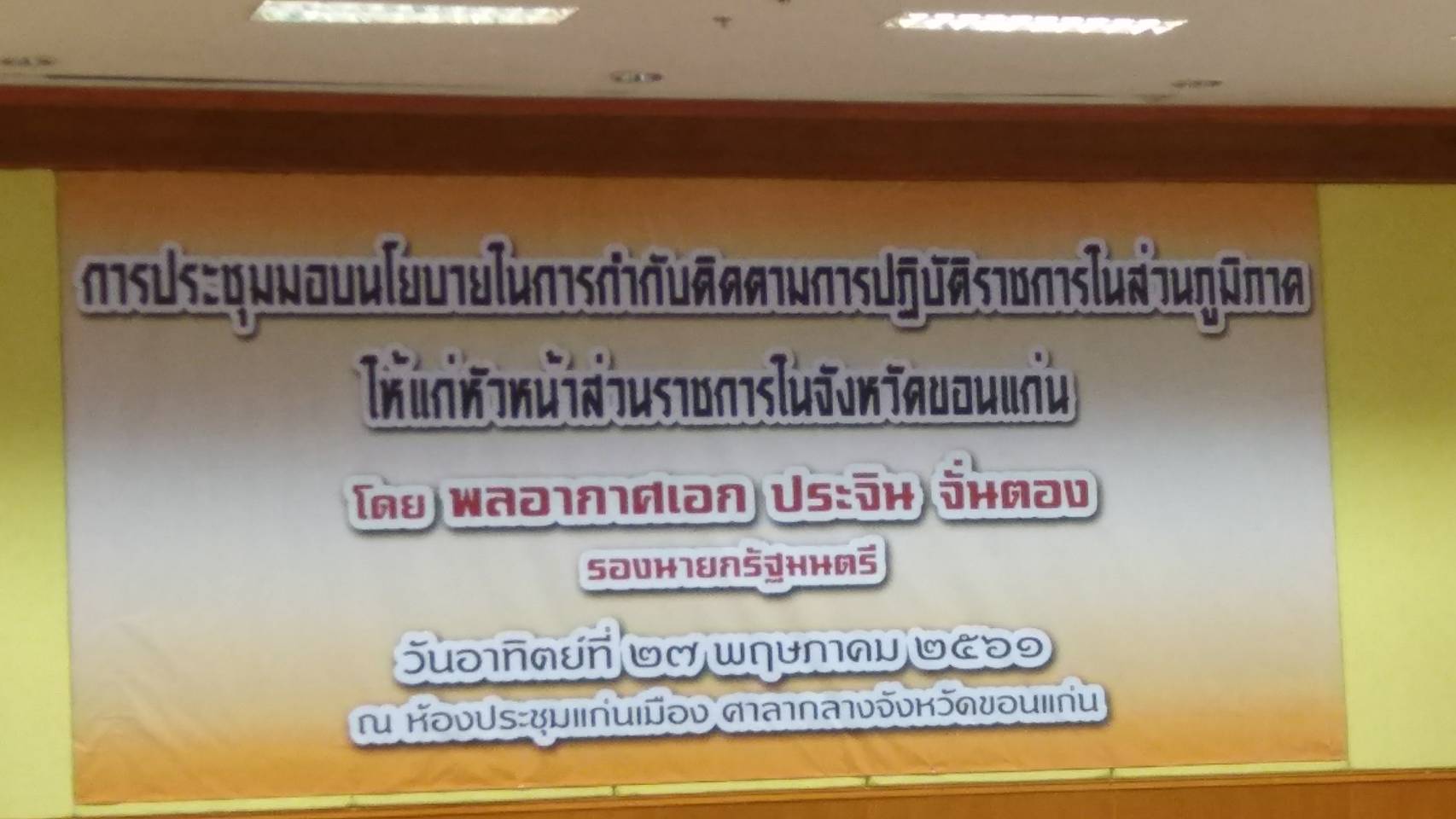 วันอาทิตย์ที่ ๒๗ พฤษภาคม ๒๕๖๑ นายสาธิต สื่อประเสริฐสุข ผู้อำนวยการสำนักงานทรัพยากรน้ำภาค ๔ ได้มอบหมายให้ นายธนกฤษ ถุวะศรี ผู้อำนวยการส่วนยุทธศาสตร์ เข้าร่วมการประชุมมอบนโยบายในการกำกับติดตามการปฏิบัติราชการในส่วนภูมิภาคให้แก่หัวหน้าส่วนราชการในจังหวัดขอนแก่น ของพลอากาศเอก ประจิน จั่นตอง รองนายกรัฐมนตรี ณ ห้องประชุมแก่นเมือง ศาลากลางจังหวัดขอนแก่น