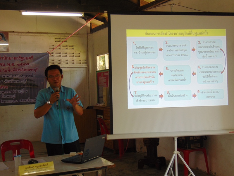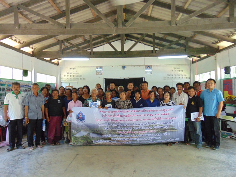 สำนักงานทรัพยากรน้ำภาค ๗ โดยส่วนประสานและบริหารจัดการลุ่มน้ำเพชรบุรีและประจวบคีรีขันธ์และส่วนพัฒนาและฟื้นฟูแหล่งน้ำ จัดโครงการประชุมเชิงปฏิบัติการตามระเบียบสำนักนายกรัฐมนตรี ว่าด้วยการรับฟังความคิดเห็นของประชาชน พ.ศ. ๒๕๔๘ ปีงบประมาณ ๒๕๖๒ โครงการปรับปรุงฟื้นฟูแหล่งน้ำอ่างเก็บน้ำหนองน้ำดำ พร้อมระบบกระจายน้ำ หมู่ที่ ๔ ตำบลห้วยแม่เพรียง อำเภอแก่งกระจาน จังหวัดเพชรบุรี ในวันพฤหัสบดีที่ ๑๗ พฤษภาคม ๒๕๖๑ เวลา ๐๙.๐๐ - ๑๒.๐๐ น. ณ ศูนย์ประสานงานโครงการพัฒนาห้วยแม่เพรียงตามพระราชดำริ หมู่ที่ ๔ ตำบลห้วยแม่เพรียง อำเภอแก่งกระจาน จังหวัดเพชรบุรี โดยมี นายสุธี เล้าสุบินประเสริฐ นายอำเภอแก่งกระจาน เปิดการประชุมและมอบนโยบายการบริหารจัดการน้ำ นายธันยา จรูญสมาธิศักดิ์ นักวิเคราะห์นโยบายและแผนชำนาญการ สำนักงานทรัพยากรน้ำภาค ๗ ชี้แจงวัตถุประสงค์โครงการประชุมเชิงปฏิบัติการตามระเบียบสำนักนายกรัฐมนตรีฯ นายอวิษฐา รัตนพงษ์ วิศวกรโยธาปฏิบัติการ สำนักงานทรัพยากรน้ำภาค ๗ ชี้แจงรายละเอียดการดำเนินโครงการฯ และตอบข้อซักถามที่ประชุมมีมติเห็นชอบให้ดำเนินการโครงการปรับปรุงฟื้นฟูแหล่งน้ำอ่างเก็บน้ำหนองน้ำดำ พร้อมระบบกระจายน้ำ หมู่ที่ ๔ ตำบลห้วยแม่เพรียง อำเภอแก่งกระจาน จังหวัดเพชรบุรี ผู้เข้าร่วมประชุมประกอบด้วย ประชาชนในพื้นที่ ผู้นำชุมชน หน่วยงานราชการที่เกี่ยวข้อง จำนวน ๑๐๗ คน และเจ้าหน้าที่ จำนวน ๗ คน รวมทั้งสิ้น ๑๑๔ คน