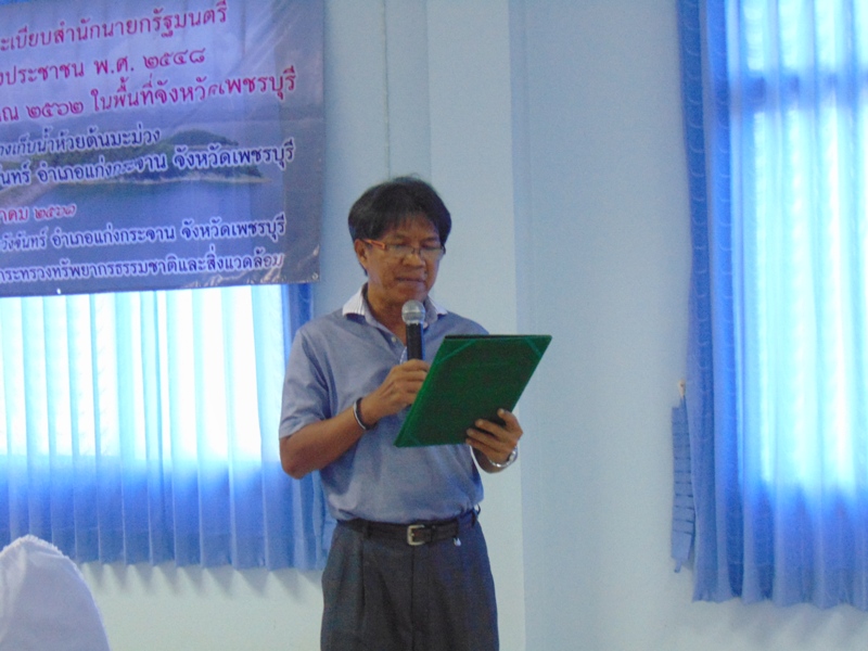สำนักงานทรัพยากรน้ำภาค ๗ โดยส่วนประสานและบริหารจัดการลุ่มน้ำเพชรบุรีและประจวบคีรีขันธ์และส่วนพัฒนาและฟื้นฟูแหล่งน้ำ จัดโครงการประชุมเชิงปฏิบัติการตามระเบียบสำนักนายกรัฐมนตรี ว่าด้วยการรับฟังความคิดเห็นของประชาชน พ.ศ. ๒๕๔๘ ปีงบประมาณ ๒๕๖๒ โครงการปรับปรุงฟื้นฟูแหล่งน้ำอ่างเก็บน้ำห้วยต้นมะม่วง บ้านซ่อง หมู่ที่ 1 บ้านหนองจิก หมู่ที่ 6 ตำบลวังจันทร์ อำเภอแก่งกระจาน จังหวัดเพชรบุรี ในวันศุกร์ที่ ๑๘ พฤษภาคม ๒๕๖๑ เวลา ๐๙.๐๐ - ๑๒๐๐ น. ณ ห้องประชุมองค์การบริหารส่วนตำบลวังจันทร์ ตำบลวังจันทร์ อำเภอแก่งกระจาน จังหวัดเพชรบุรี โดยมี นายสุธี เล้าสุบินประเสริฐ นายอำเภอแก่งกระจาน เปิดการประชุมและมอบนโยบายการบริหารจัดการน้ำ นายธันยา จรูญสมาธิศักดิ์ นักวิเคราะห์นโยบายและแผนชำนาญการ สำนักงานทรัพยากรน้ำภาค ๗ ชี้แจงวัตถุประสงค์โครงการประชุมเชิงปฏิบัติการตามระเบียบสำนักนายกรัฐมนตรีฯ นายอโนชา ชูชีพ นายช่างโยธาชำนาญงาน สำนักงานทรัพยากรน้ำภาค ๗ ชี้แจงรายละเอียดการดำเนินโครงการฯ และตอบข้อซักถาม ที่ประชุมมีมติเห็นชอบให้ดำเนินการโครงการปรับปรุงฟื้นฟูแหล่งน้ำอ่างเก็บน้ำห้วยต้นมะม่วง บ้านซ่อง หมู่ที่ ๑ บ้านหนองจิก หมู่ที่ ๖ ตำบลวังจันทร์ อำเภอแก่งกระจาน จังหวัดเพชรบุรี ผู้เข้าร่วมประชุมประกอบด้วย ประชาชนในพื้นที่ ผู้นำชุมชน หน่วยงานราชการที่เกี่ยวข้อง จำนวน ๔๙ คน และเจ้าหน้าที่ จำนวน ๗ คน รวมทั้งสิ้น ๕๖ คน