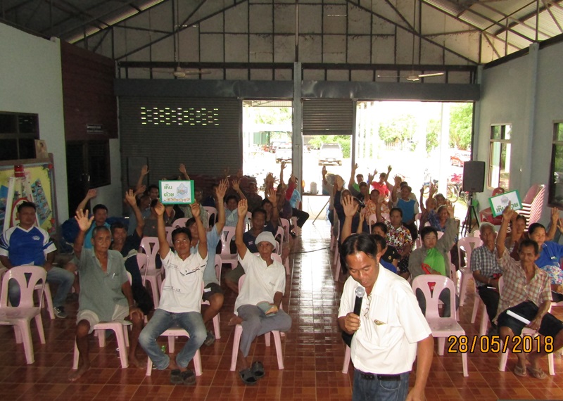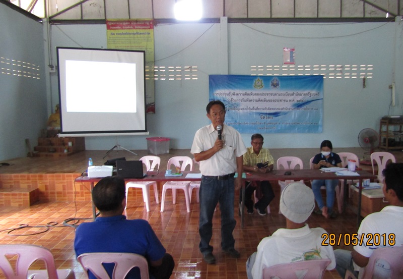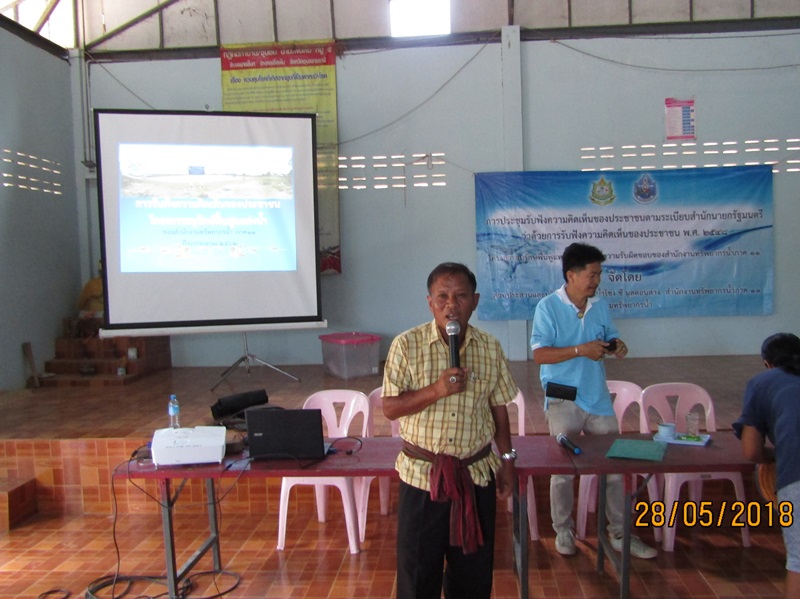 โดยมีผู้เข้าร่วมรับฟังฯ จำนวน ๖๒ ท่าน มติประชาคมเห็นด้วย ๖๑ ท่าน ไม่เห็นด้วย ๑ ท่าน ผู้ไม่เห็นด้วยมีความกังวลเกี่ยวกับการเจือปนของสารเคมีที่เกิดจากประกอบธุรกิจรับซื้อของเก่าในพื้นที่ อาจจะไหลลงสู่หนองน้ำดังกล่าว ทำให้น้ำไม่มีคุณภาพที่จะใช้ประโยชน์ได้ตามความประสงค์ของประชาชนในพื้นที่ เจ้าหน้าที่ (สทภ.๑๑) จึงแนะนำให้ผู้นำชุมชนในพื้นที่ทำการประชาคมทำความเข้าใจเกี่ยวกับโครงการปรับปรุงฟื้นฟูแหล่งน้ำดังกล่าวกับประชาชนในพื้นที่ให้ชัดเจน