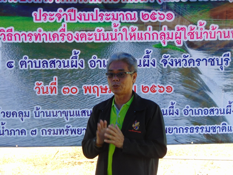เมื่อวันพุธที่ ๓๐ พฤษภาคม ๒๕๖๑ สำนักงานทรัพยากรน้ำภาค ๗ โดยส่วนประสานและบริหารจัดการลุ่มน้ำแม่กลอง จัดโครงการบริหารจัดการทรัพยากรน้ำ (เครือข่ายเดิม) ประจำปีงบประมาณ ๒๕๖๑ “อบรมให้ความรู้วิธีการทำเครื่องตะบันน้ำให้แก่กลุ่มผู้ใช้น้ำบ้านนาขุนแสน” ณ บริเวณฝายน้ำล้นห้วยคลุม หมู่ที่ ๔ ตำบลสวนผึ้ง อำเภอสวนผึ้ง จังหวัดราชบุรี โดยมีนายสมศักดิ์ เหลืองจรุงรัตน์ นายกองค์การบริหารส่วนตำบลสวนผึ้ง เป็นประธานพิธีเปิด